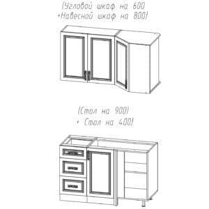 Угл. шкаф 600+Навесн.шкаф 400 и Стол на 900