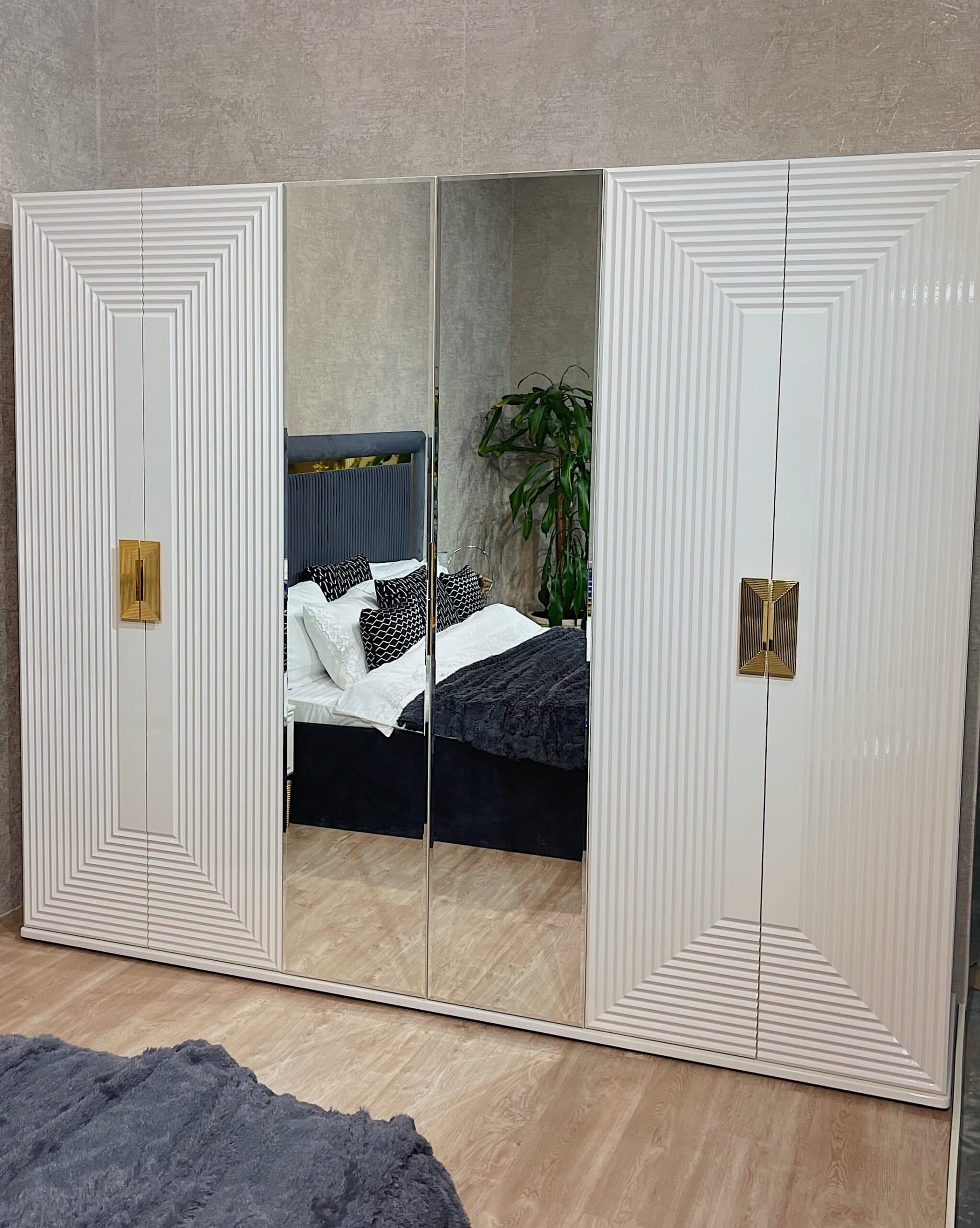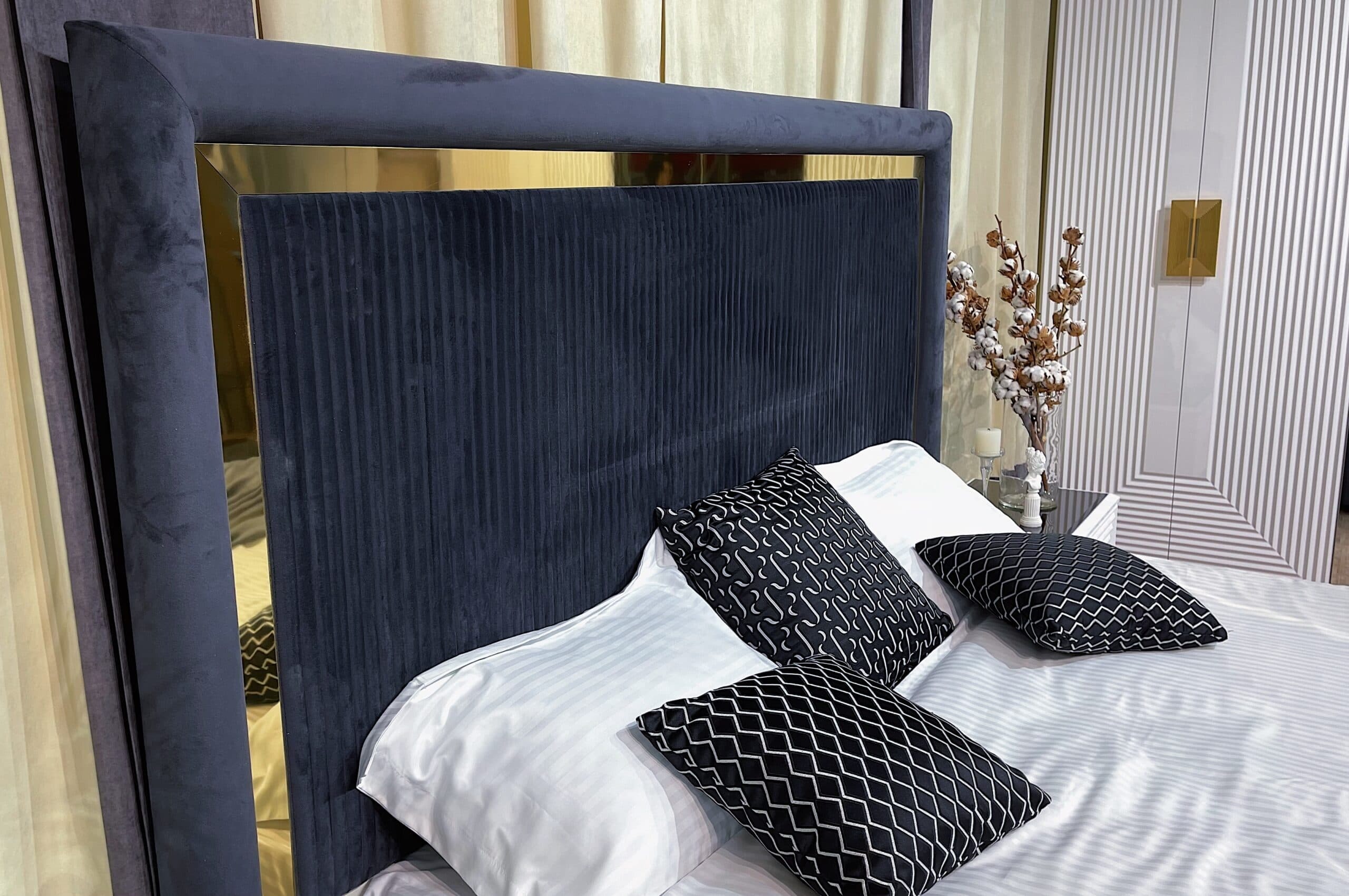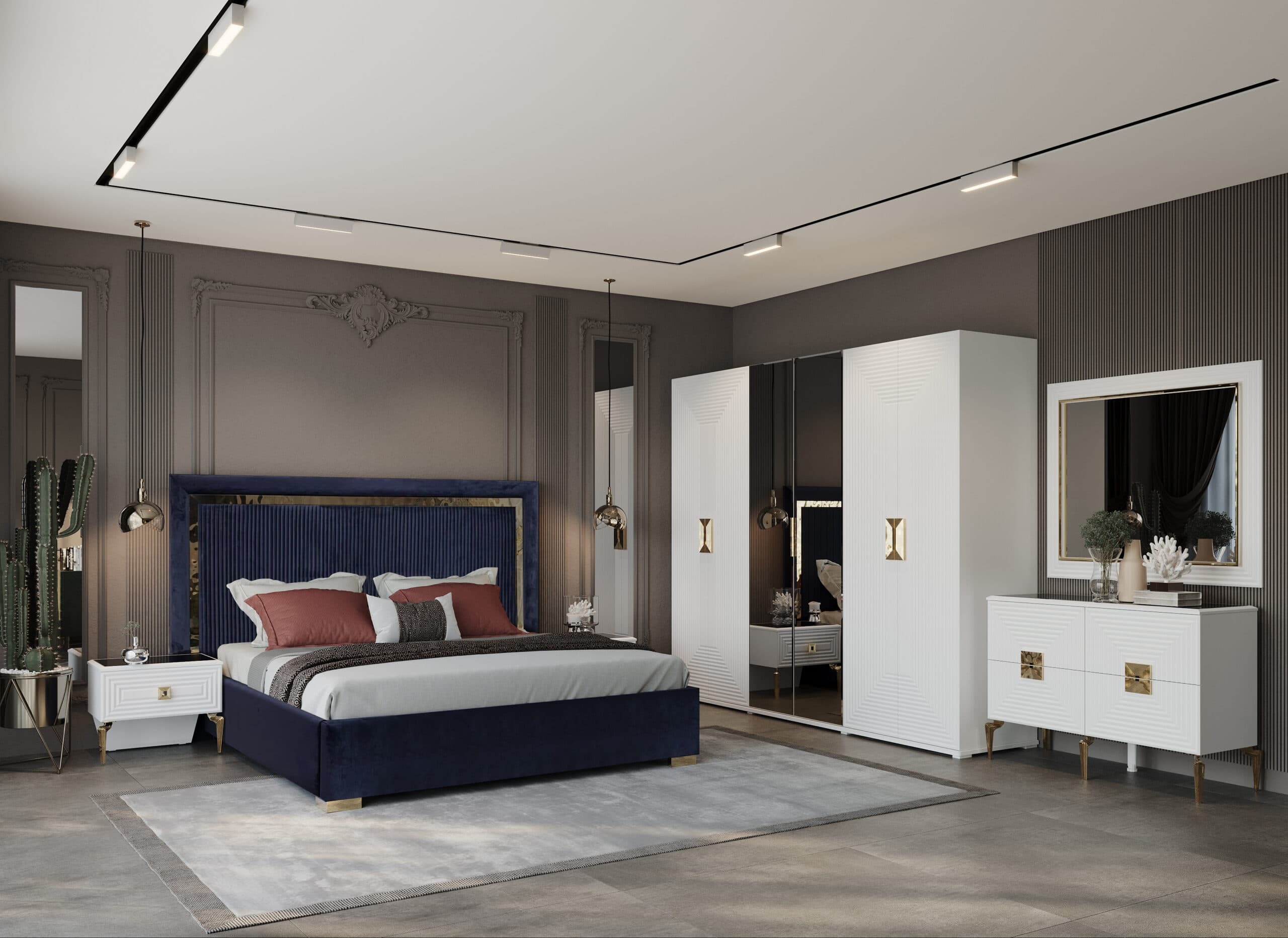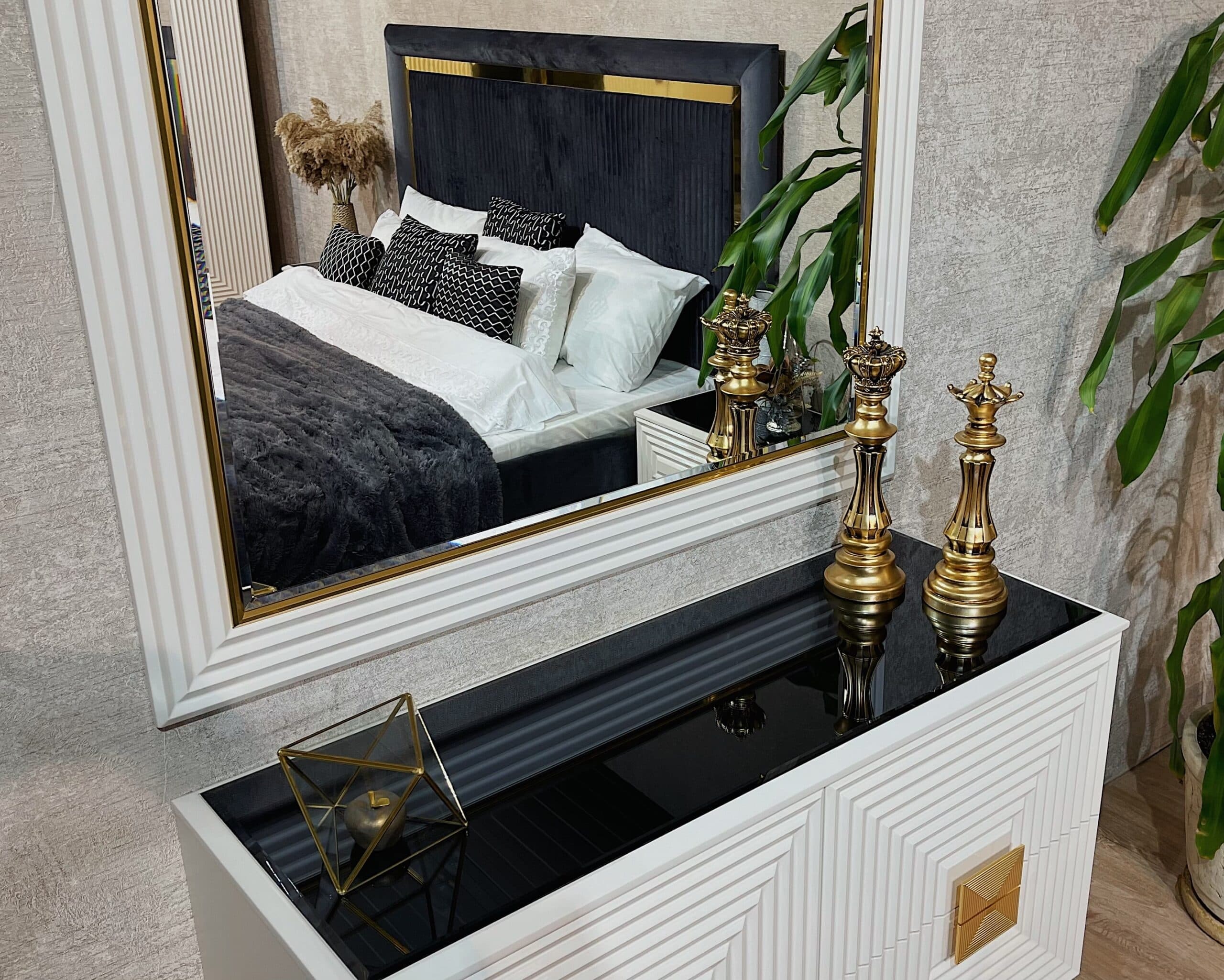 Коллекция мебели «Алия» — воплощение роскоши у вас дома! Глянцевые фасады ЛМДФ цвета сатин, изысканный молдинг из зеркального золота Турции и фурнитура бренда CEBI подарят вашему интерьеру элегантность и благородство. Прямолинейные зеркала с фацетом визуально расширяют пространство, а мягкая кровать с обивкой микровелюром создаст комфортную зону отдыха. Благодаря продуманным размерам каждый элемент идеально впишется даже в небольшое помещение. Создайте стильную обстановку без лишних усилий вместе с коллекцией «Алия».