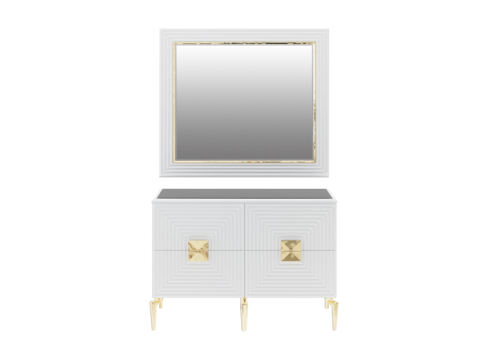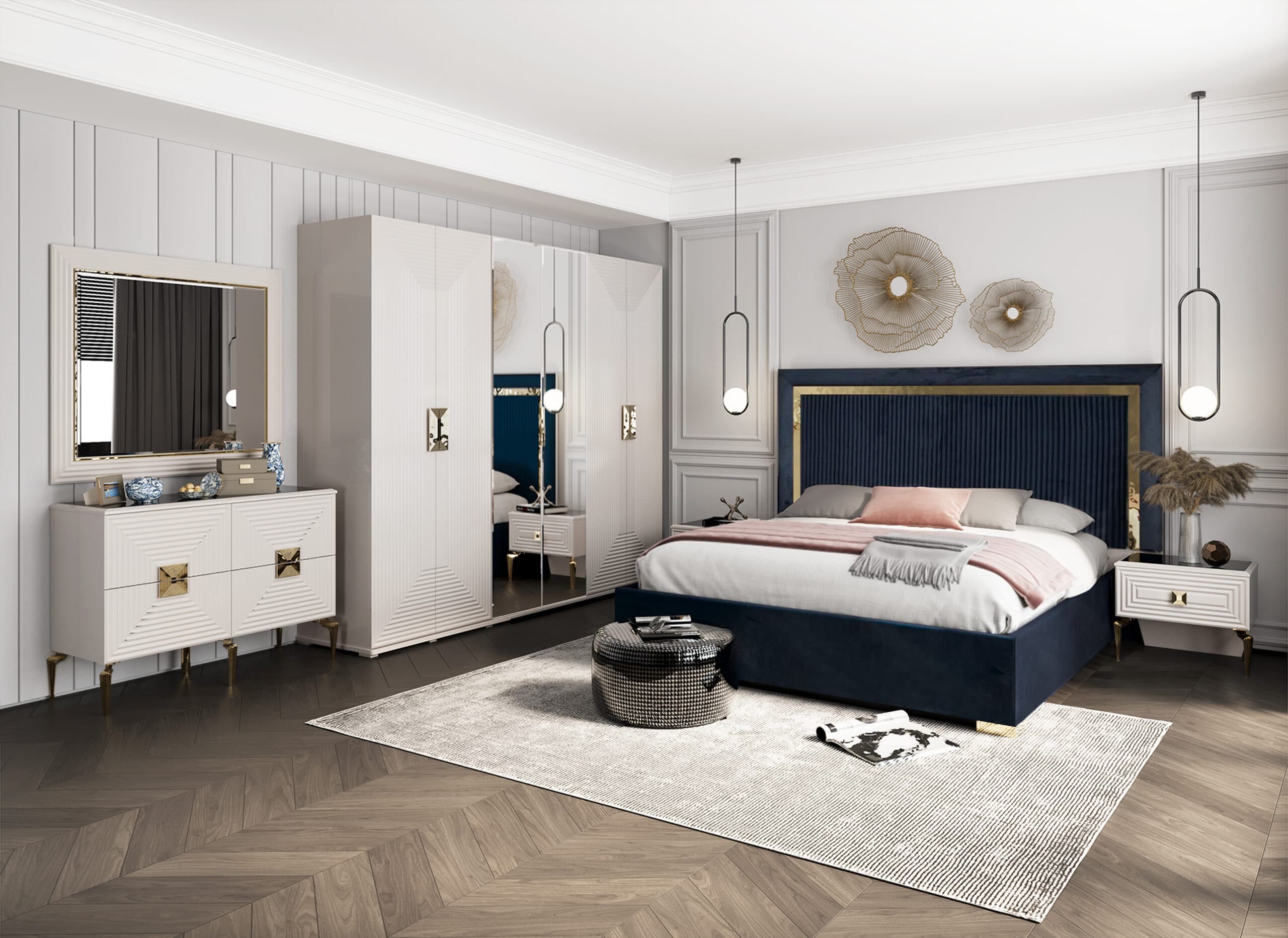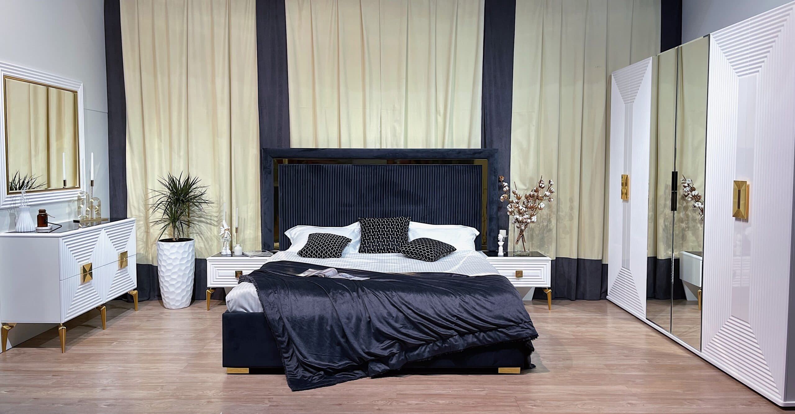 Коллекция мебели «Алия» — воплощение роскоши у вас дома! Глянцевые фасады ЛМДФ цвета сатин, изысканный молдинг из зеркального золота Турции и фурнитура бренда CEBI подарят вашему интерьеру элегантность и благородство. Прямолинейные зеркала с фацетом визуально расширяют пространство, а мягкая кровать с обивкой микровелюром создаст комфортную зону отдыха. Благодаря продуманным размерам каждый элемент идеально впишется даже в небольшое помещение. Создайте стильную обстановку без лишних усилий вместе с коллекцией «Алия».
