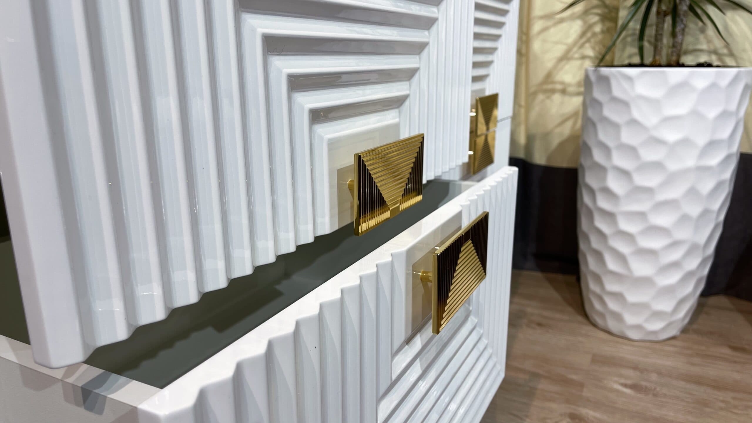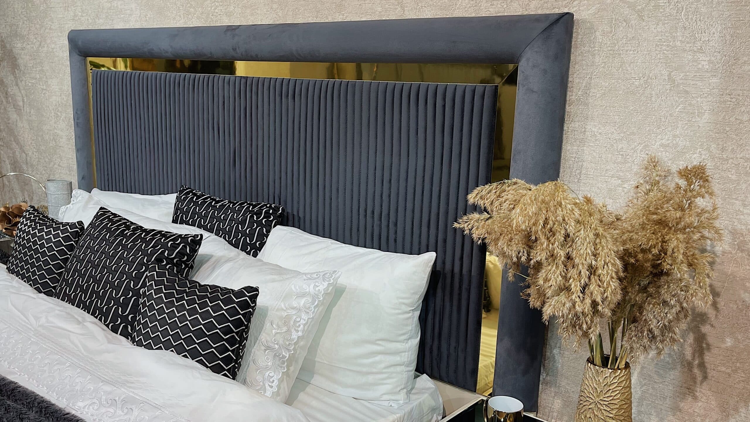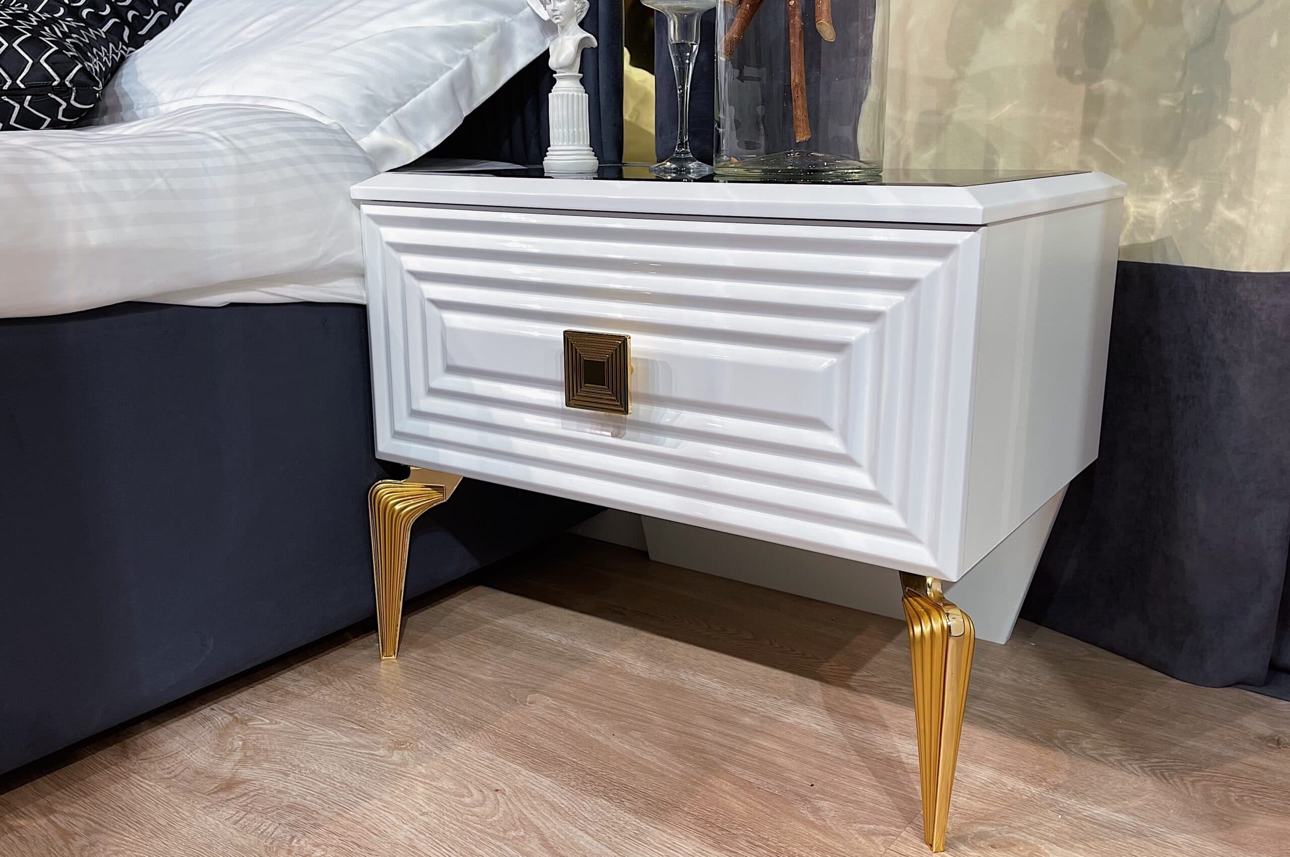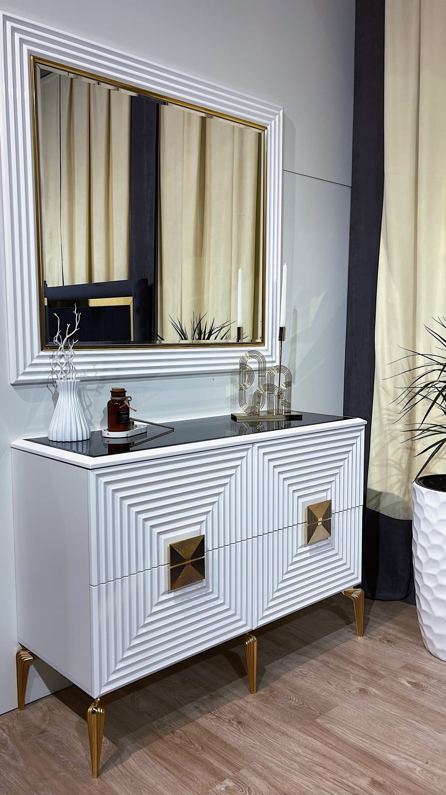 Коллекция мебели «Алия» — воплощение роскоши у вас дома! Глянцевые фасады ЛМДФ цвета сатин, изысканный молдинг из зеркального золота Турции и фурнитура бренда CEBI подарят вашему интерьеру элегантность и благородство. Прямолинейные зеркала с фацетом визуально расширяют пространство, а мягкая кровать с обивкой микровелюром создаст комфортную зону отдыха. Благодаря продуманным размерам каждый элемент идеально впишется даже в небольшое помещение. Создайте стильную обстановку без лишних усилий вместе с коллекцией «Алия».