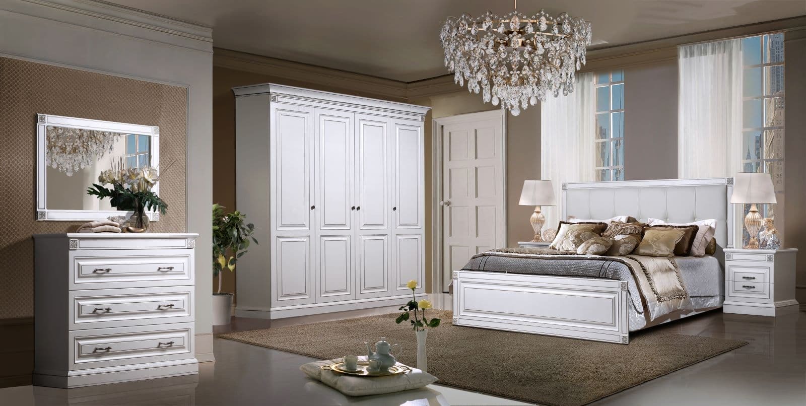 Шкаф 4-х дверный – Ш:2102мм, В:2296мм, Г:651мм Кровать 1.8 – Ш: 1870мм, В:1140мм, Г:2053мм Тумба – Ш:532мм, В:552мм, Г:467мм Комод – Ш:1042мм, В:948мм, Г:467мм Зеркало – Ш:1025мм, В:720мм, Г:20мм