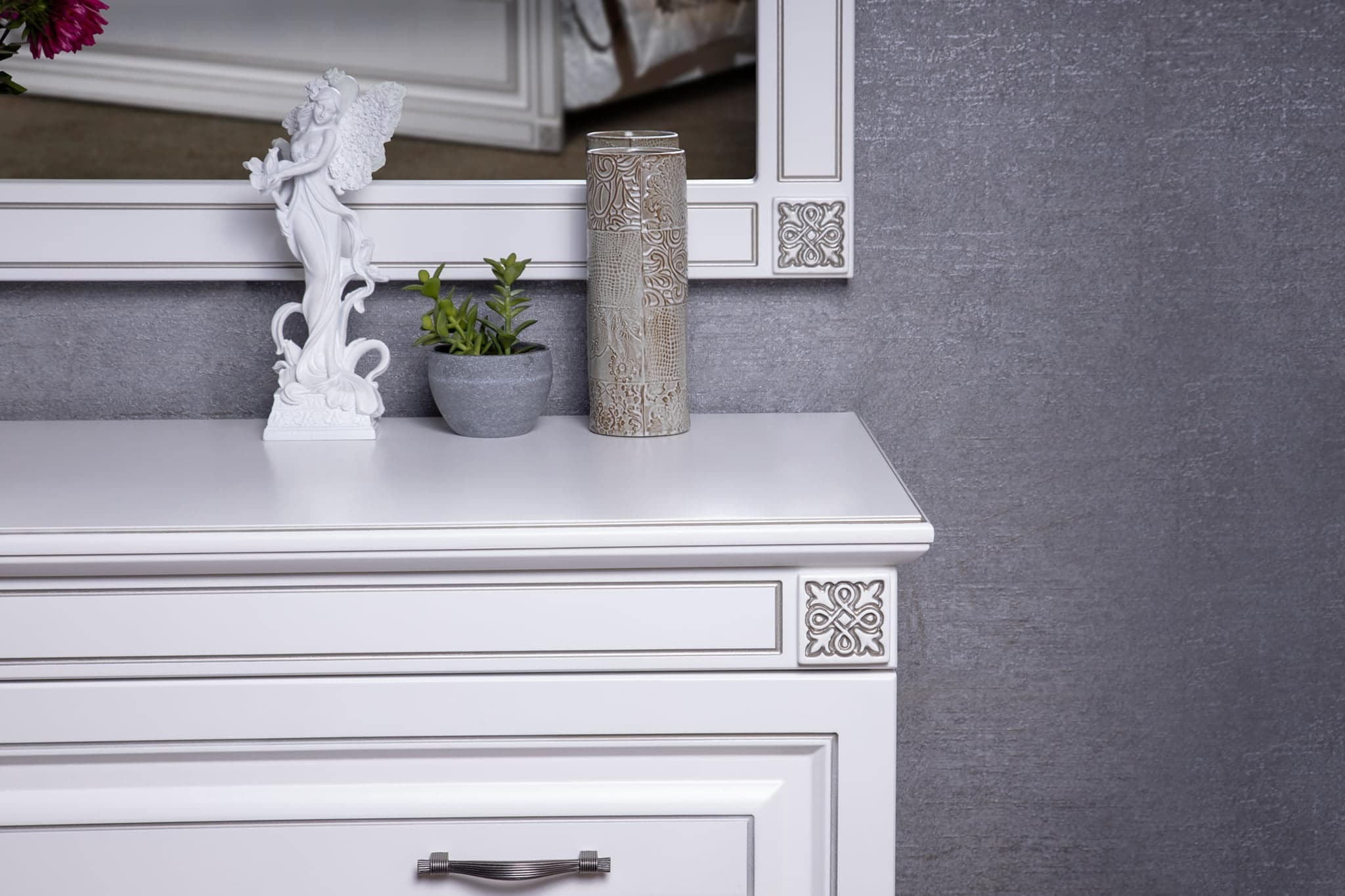 прямой, крашеный ЛМДФ с фрезеровкой, карниз из пенополиуретана, лак матовый