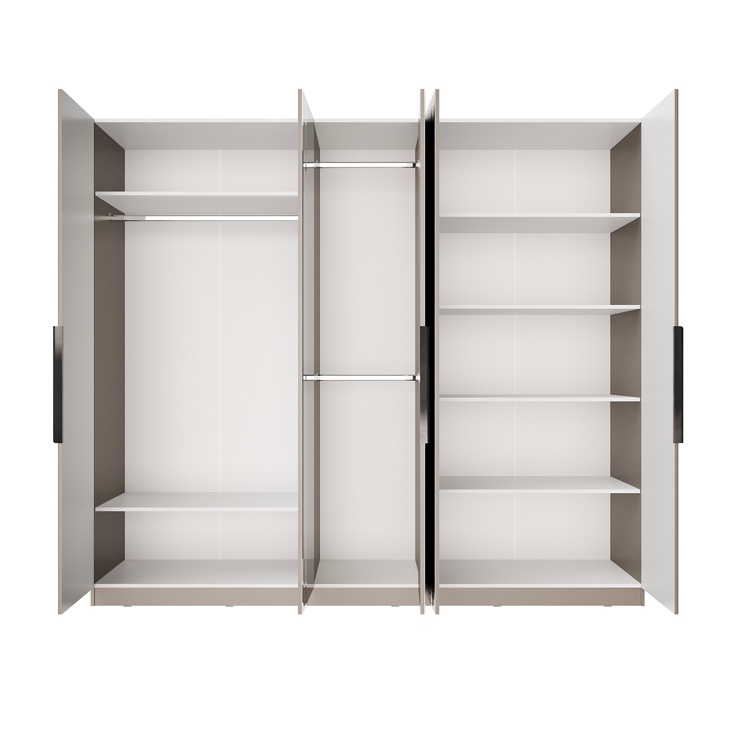 Шкаф 5-ти дверный ш: 2500 мм, г: 600 мм, в: 2200 мм Шкаф 4-х дверный ш: 2000 мм, г: 600 мм, в: 2200 мм Кровать 1.8 ш: 2440 мм, г: 2070 мм, в: 1150 мм Тумба ш: 560 мм, г: 400 мм, в: 433 мм Туал.стол ш: 1242 мм, г: 450 мм, в: 820 мм Комод ш:960 мм, г: 450 мм, в: 925 мм Зеркало ш: 936 мм, г: 20 мм, в: 919 мм Пуфик ш: 350 мм, г: 350 мм, в: 430 мм