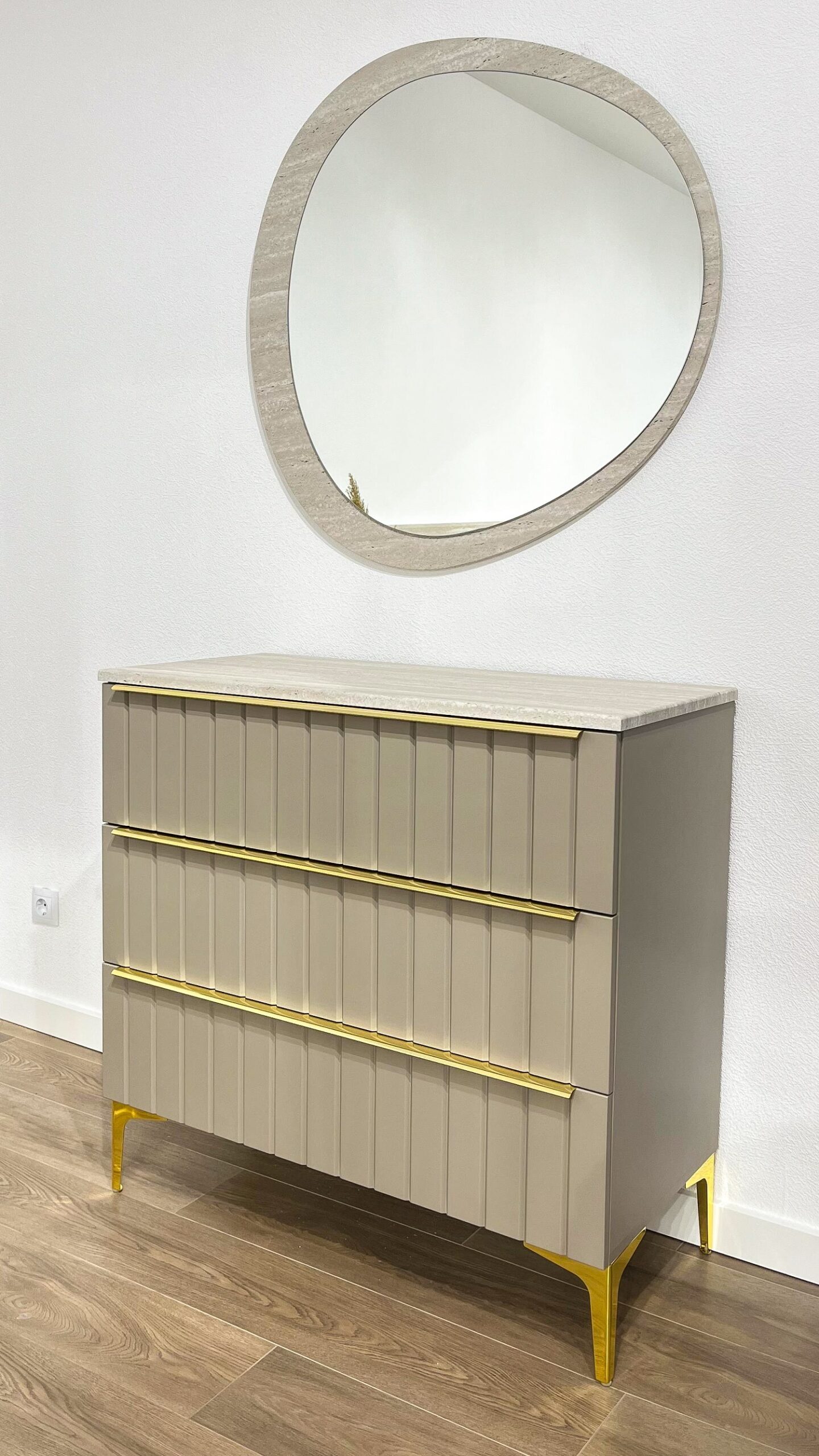 прямолинейный фацет на шкафе и рамка круглое зеркало