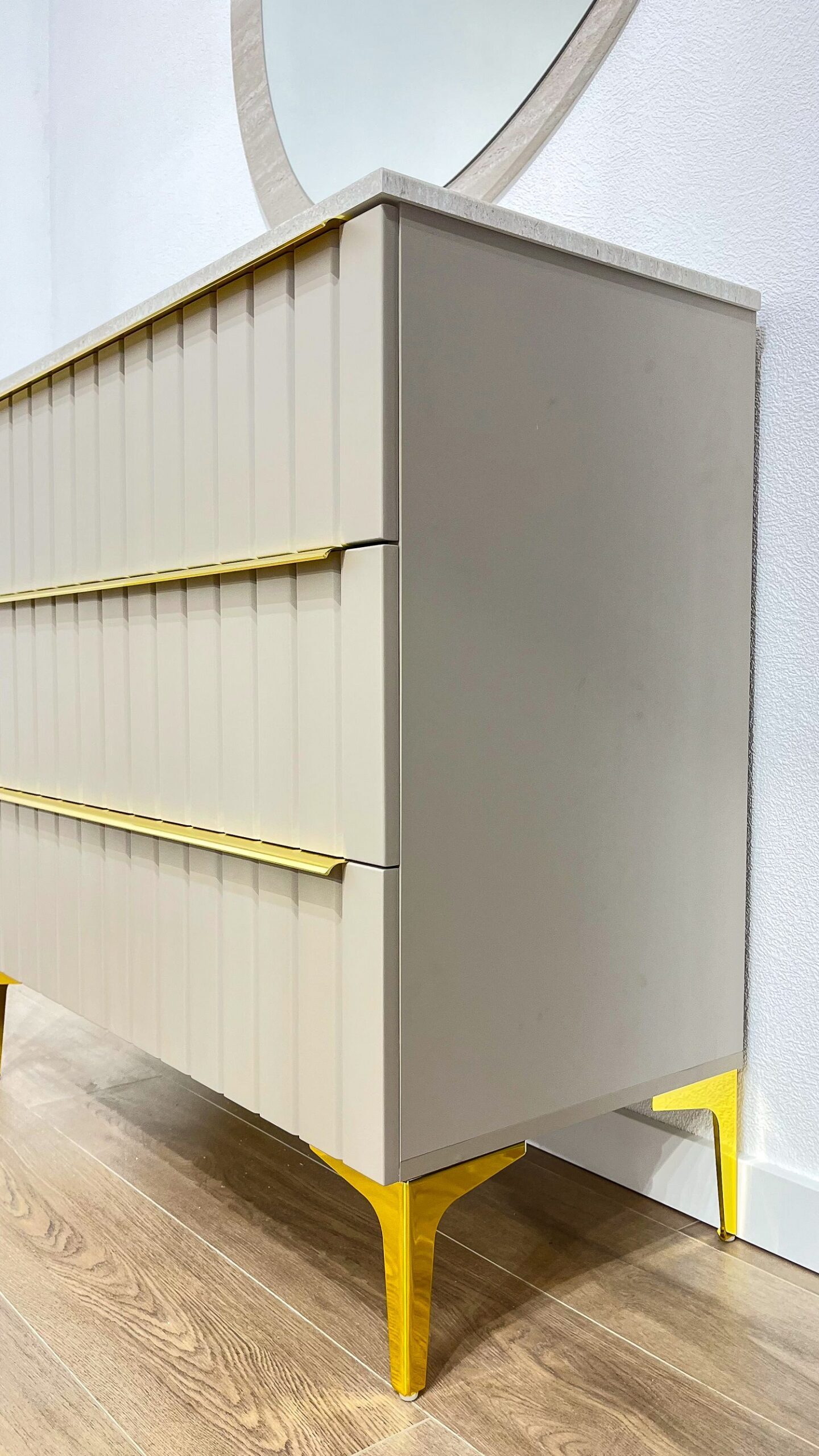 Коллекция мебели «Аврора» Кашемир — это воплощение элегантности и комфорта! В изысканном цвете кашемира мебель из ЛМДФ и ламинированного ДСП подчеркнет ваш безупречный вкус. Мягкие элементы микровелюра подарят уют, а фасад с фрезеровкой придаст интерьеру индивидуальность. Плавные движения дверей обеспечивают качественные петли SKMF с доводчиками. Элегантное оформление зеркальных элементов завершит гармоничный образ вашего пространства. Выберите стиль жизни премиум-класса вместе с коллекцией «Аврора».