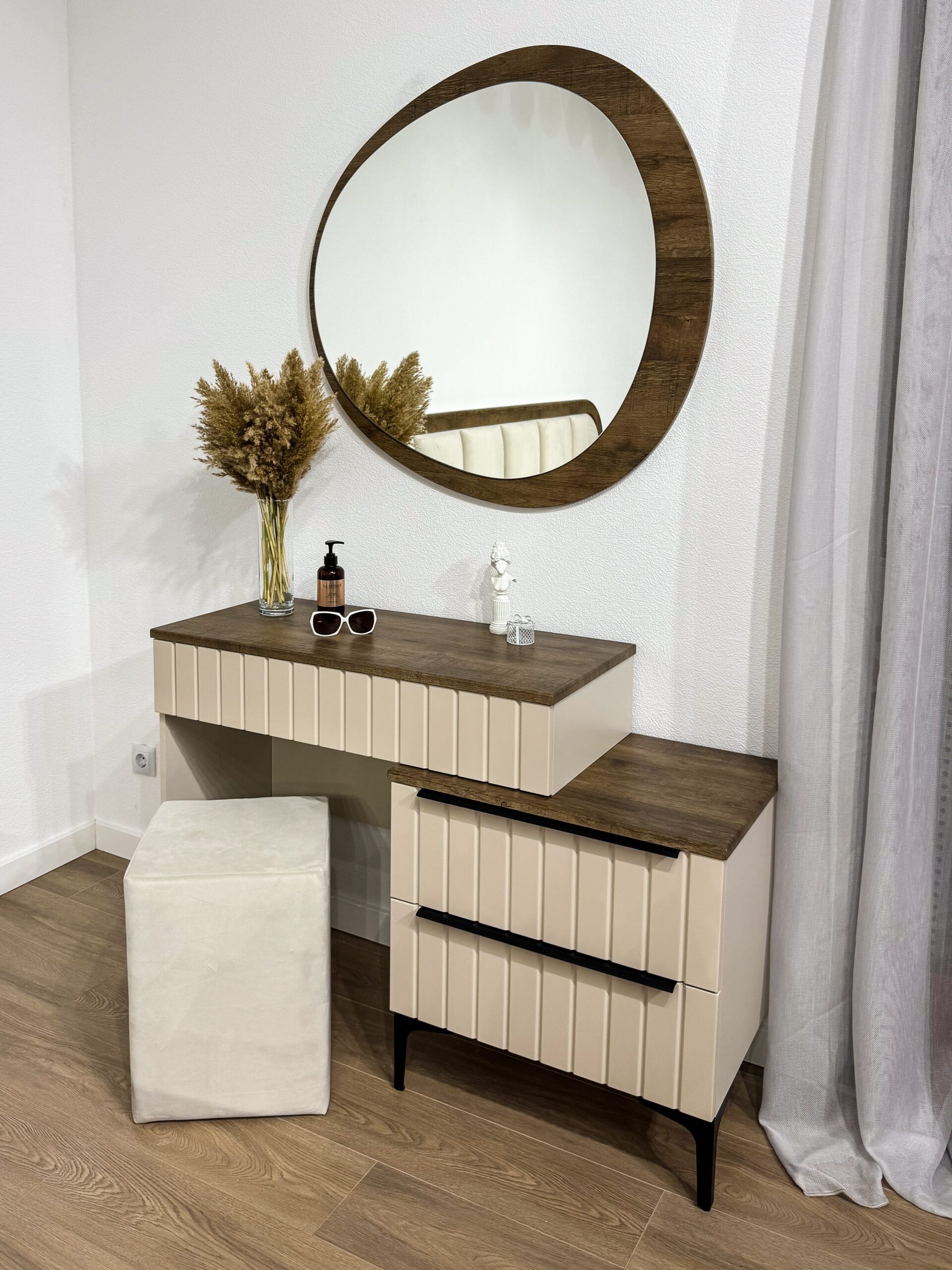 прямолинейный фацет на шкафе и рамка круглое зеркало