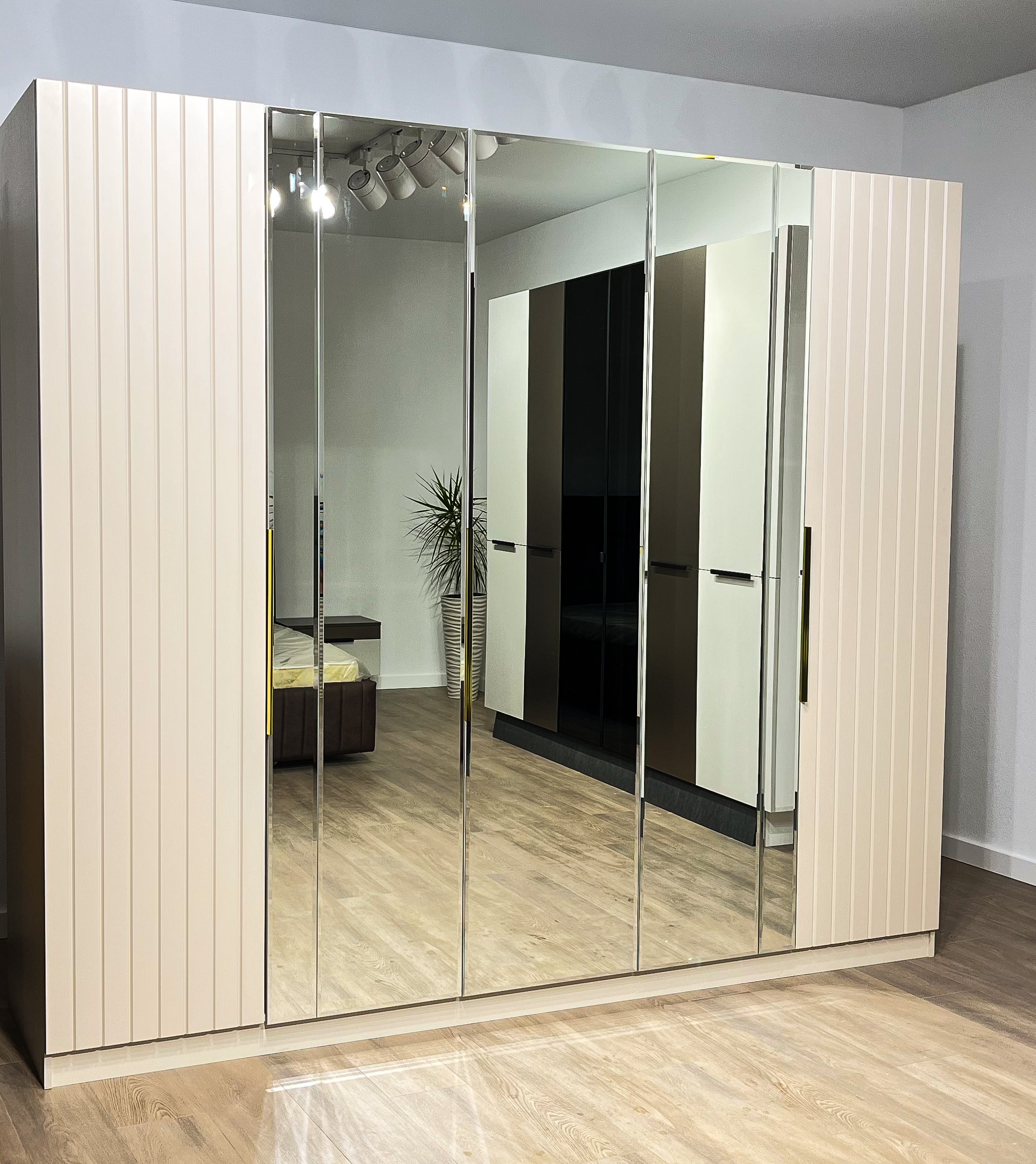 Шкаф 5-ти дверный ш: 2500 мм, г: 600 мм, в: 2200 мм Шкаф 4-х дверный ш: 2000 мм, г: 600 мм, в: 2200 мм Кровать 1.8 ш: 2440 мм, г: 2070 мм, в: 1150 мм Тумба ш: 560 мм, г: 400 мм, в: 433 мм Туал.стол ш: 1242 мм, г: 450 мм, в: 820 мм Комод ш:960 мм, г: 450 мм, в: 925 мм Зеркало ш: 936 мм, г: 20 мм, в: 919 мм Пуфик ш: 350 мм, г: 350 мм, в: 430 мм