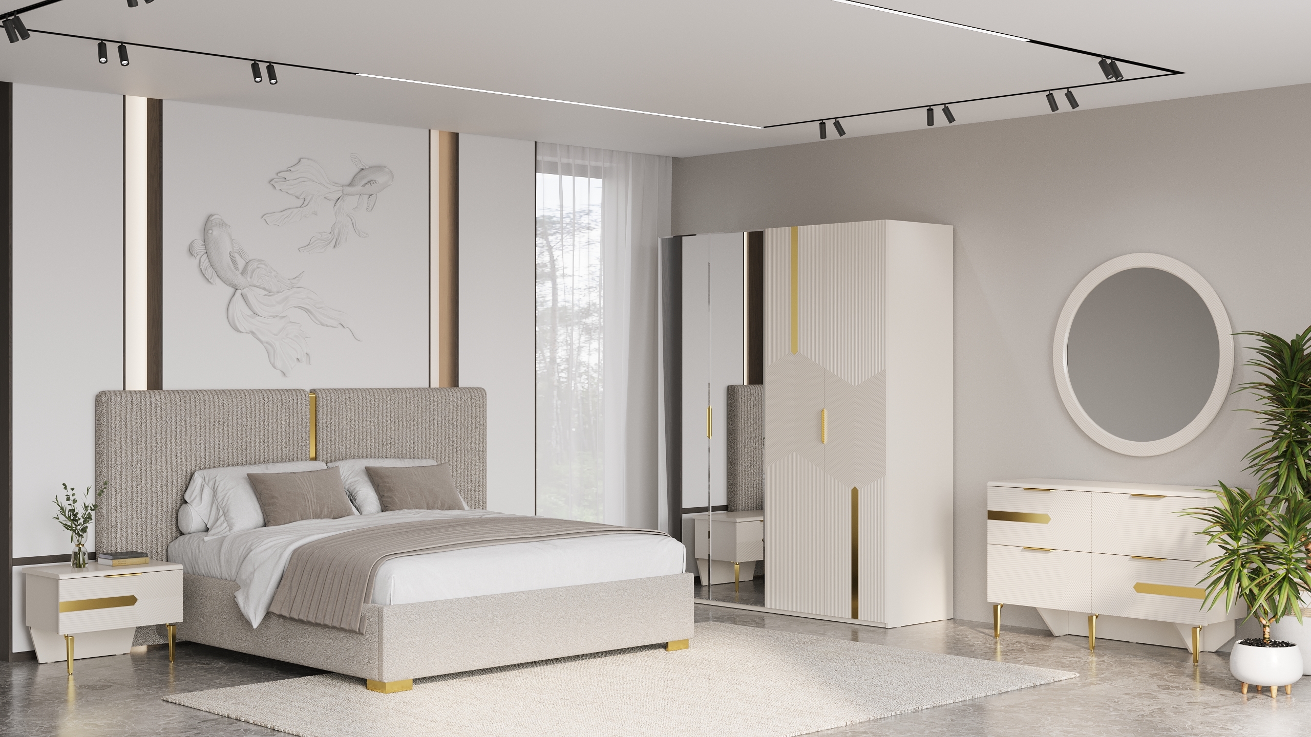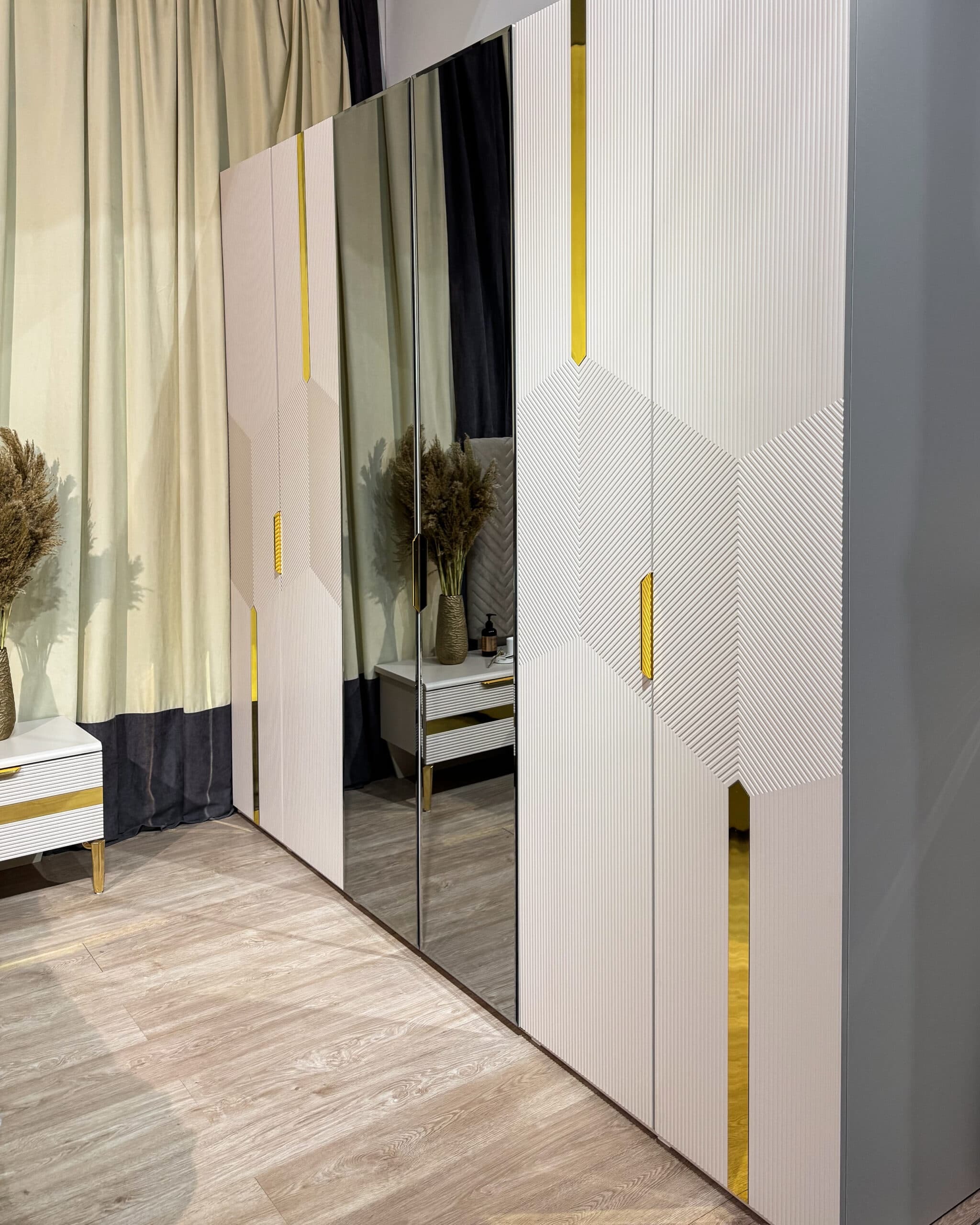 Коллекция мебели «Эстель» Золото — воплощение элегантности и роскоши! Ваш интерьер засияет новыми красками благодаря изысканному сочетанию зеркал золотого оттенка, мягкой текстуры тканей и долговечного ЛМДФ-материала. С комфортом спите на удобной кровати размером 1,8 м или 1,6 м; сохранить вещи помогут вместительные шкафы и комоды, а стильное зеркало станет акцентным элементом декора. Вдохновитесь гармонией золота и утонченности уюта сегодня!