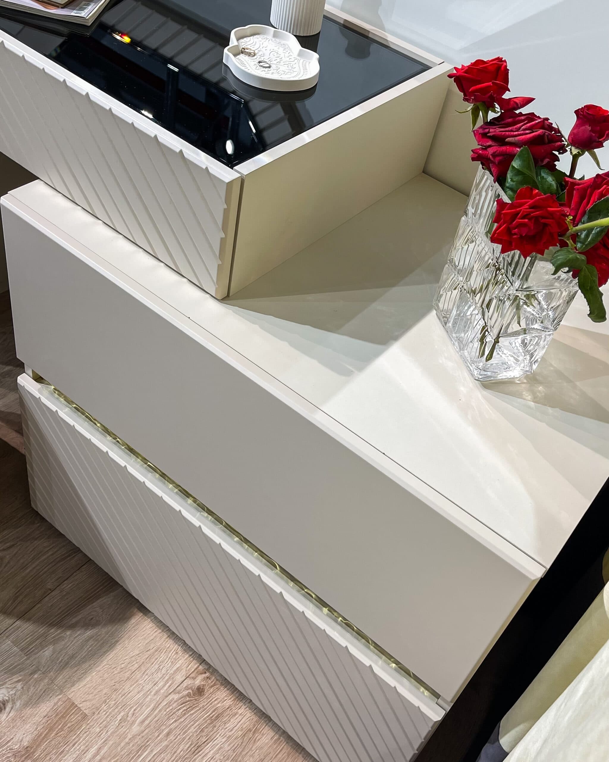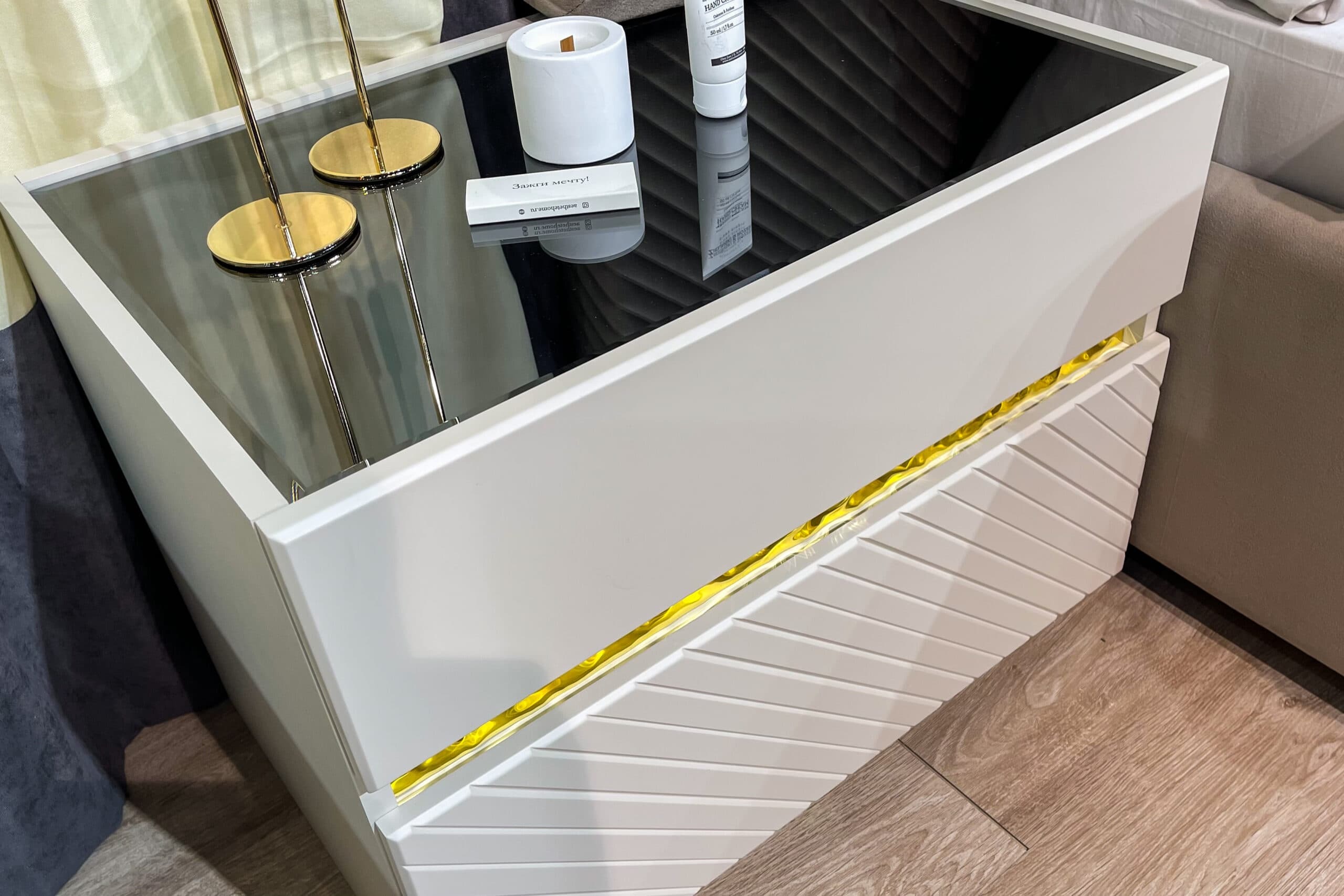 прямой, крашеный ЛМДФ (эмаль матовая) с фрезеровкой