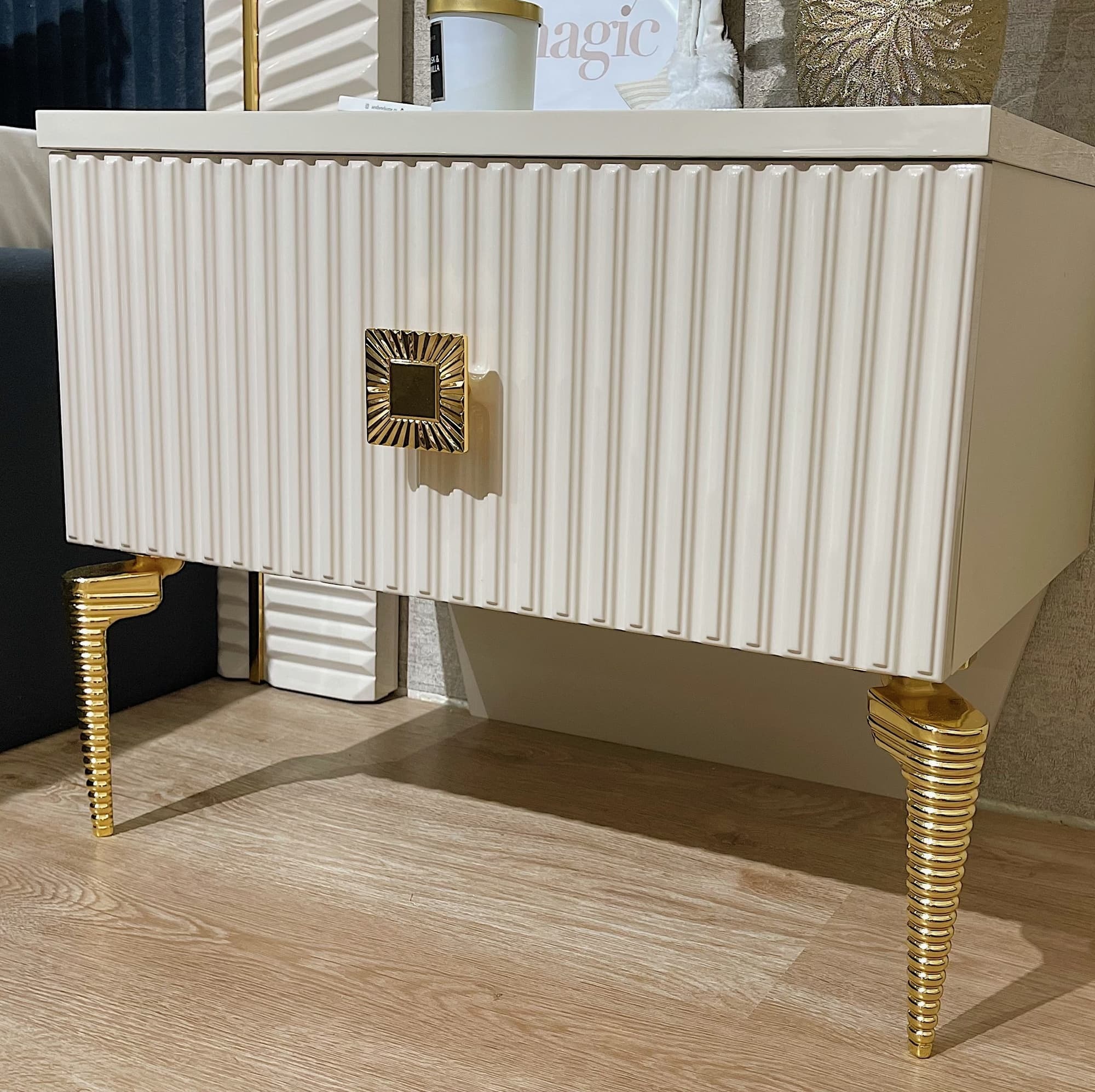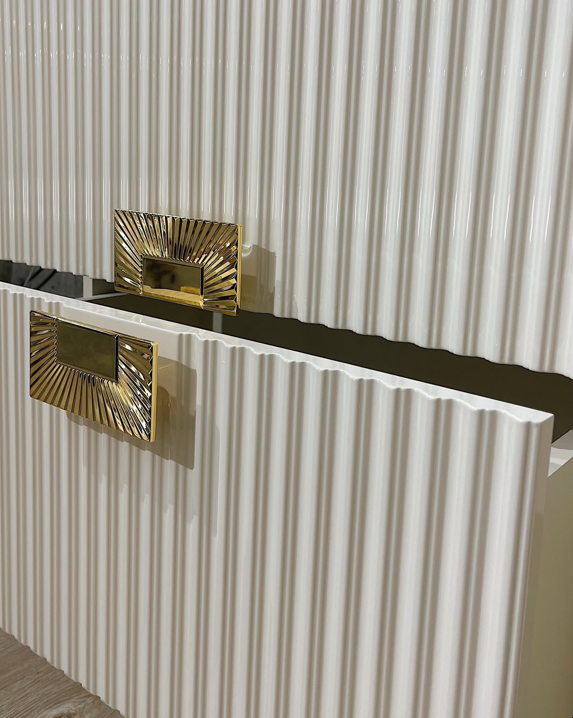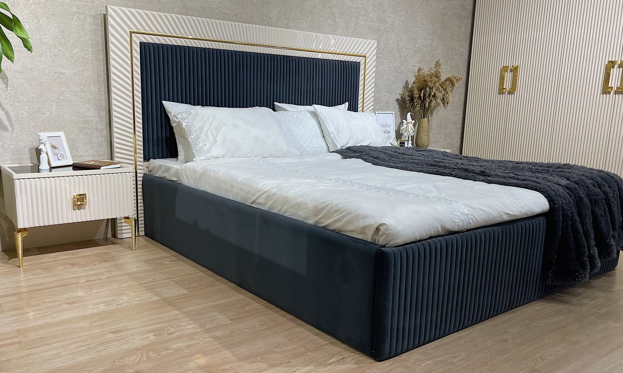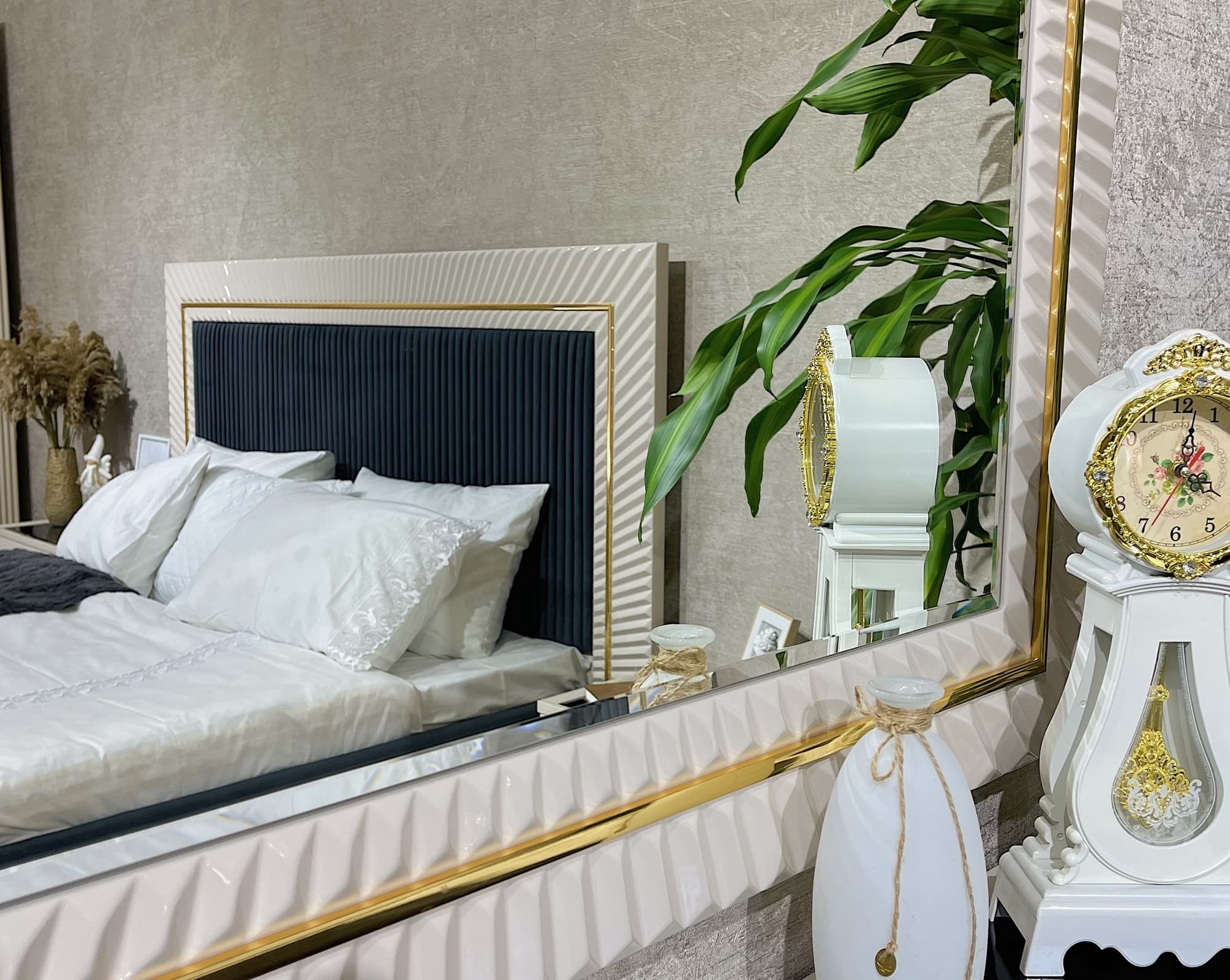 Коллекция мебели «Измир» — это воплощение элегантности и роскоши! За счет фасадного покрытия из зеркального золотого молдинга (Турция) она придаст Вашему интерьеру изысканность и благородство. Мягкая обивка изголовья кровати микровелюром глубокого синего оттенка создает атмосферу комфорта и уюта. А качественные материалы, такие как ламинированное ДСП и ЛМДФ покрытие, обеспечивают долговечность коллекции. Удобные размеры позволяют гармонично вписать мебель в любой интерьер.
