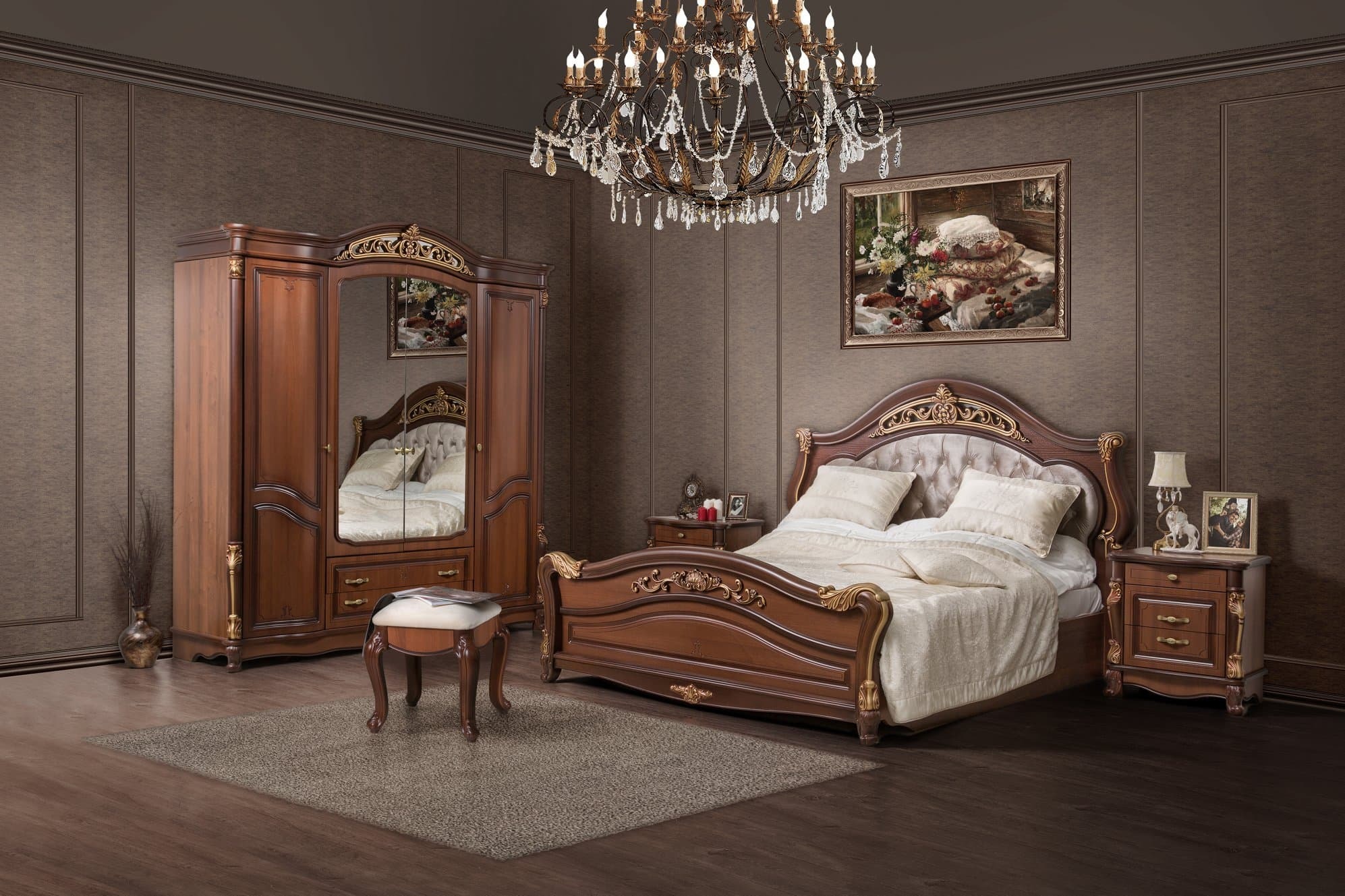 Коллекция мебели «Касандра» в цвете «Орех» — это элегантность и комфорт вашего идеального дома! Уютная кровать с мягким изголовьем, шкафы различных конфигураций, туалетные столы и тумбы создадут гармоничную атмосферу спальни. Лаконичный дизайн, высококачественные материалы ЛМДФ и ЛДСП, ортопедические основания, фурнитура Boyard подарят надежность и удобство ежедневного использования. Наслаждайтесь красотой и функциональностью итальянской патины и натурального оттенка ореха!