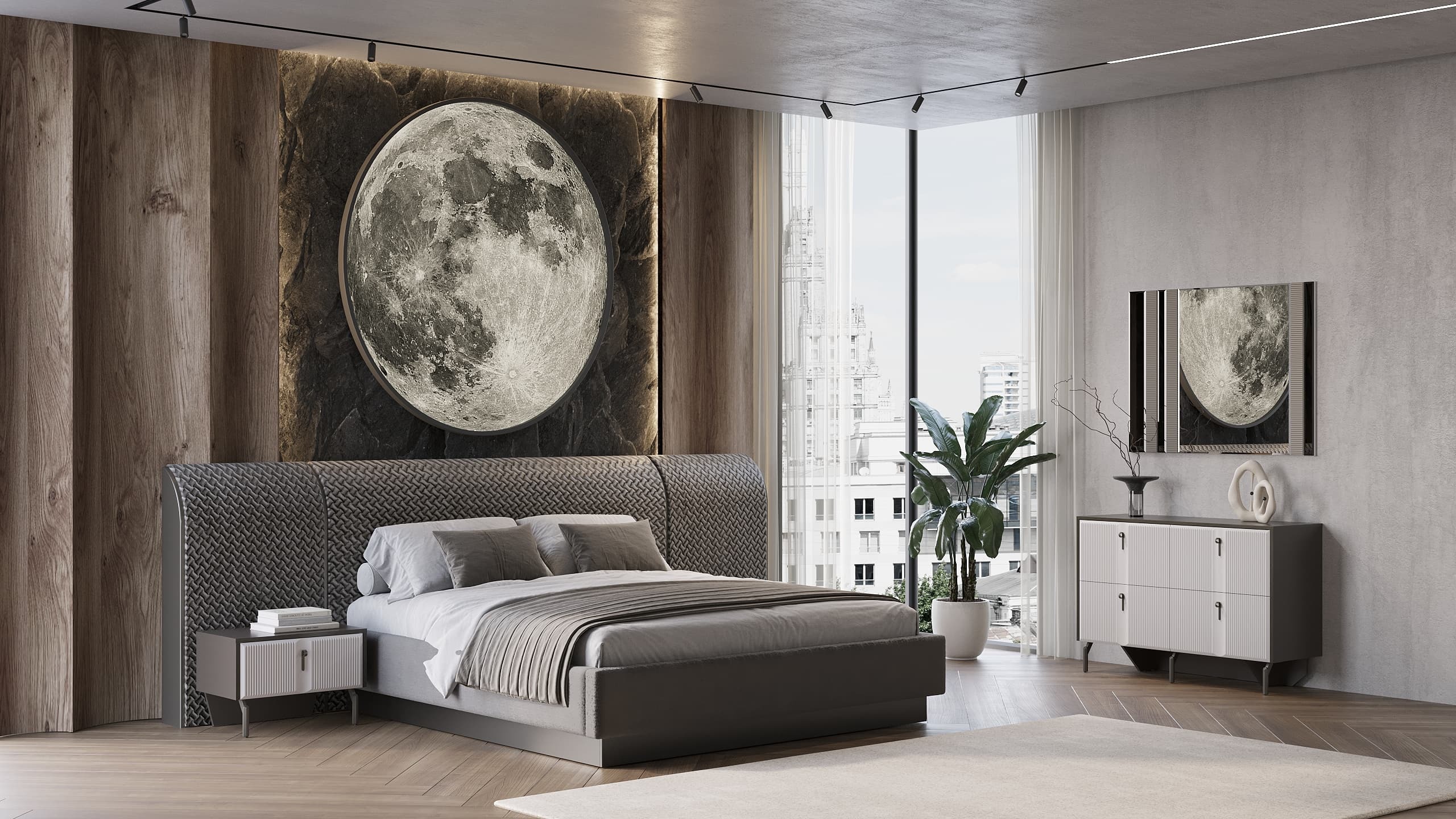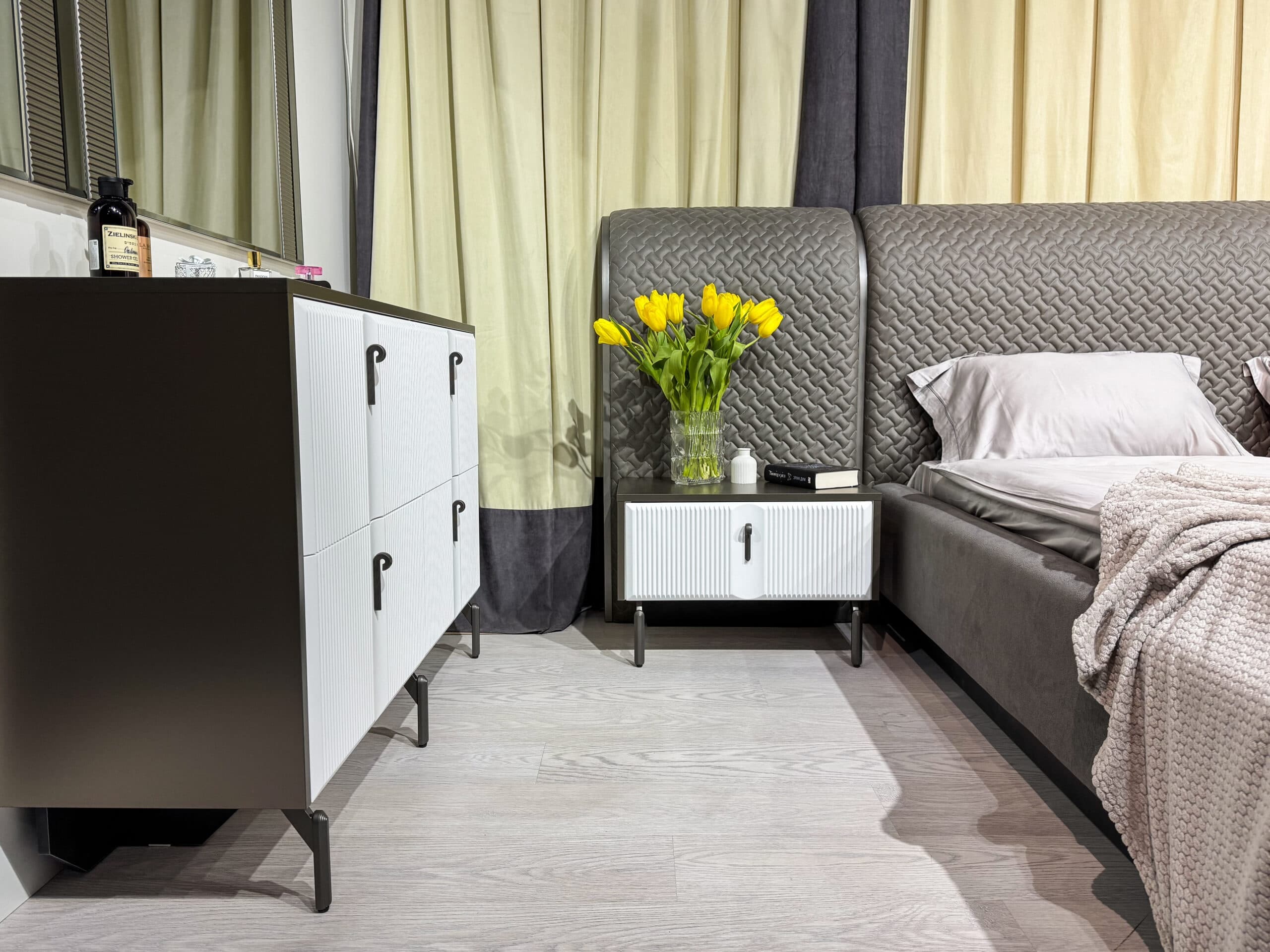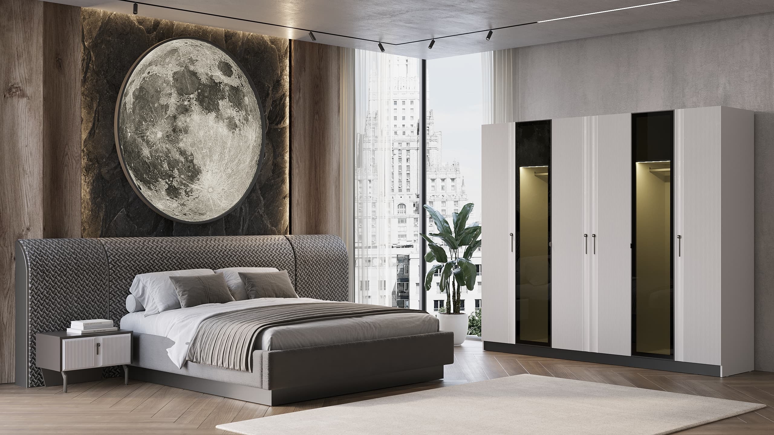 Коллекция мебели «Корнелия» — это гармония стиля и комфорта! Мягкая кровать с подъёмным механизмом обеспечит дополнительное пространство для хранения, а алюминиевые фасады с элегантной подсветкой придадут интерьеру изысканность. Прямые фасады из ЛМДФ и зеркала с фацетом создадут атмосферу утончённости и пространства. Встроенная фурнитура премиум-класса обеспечивает плавность открывания дверей и долговечность использования. Элегантные линии, сочетание белого и бронзового серебра подчеркнут статус владельца.