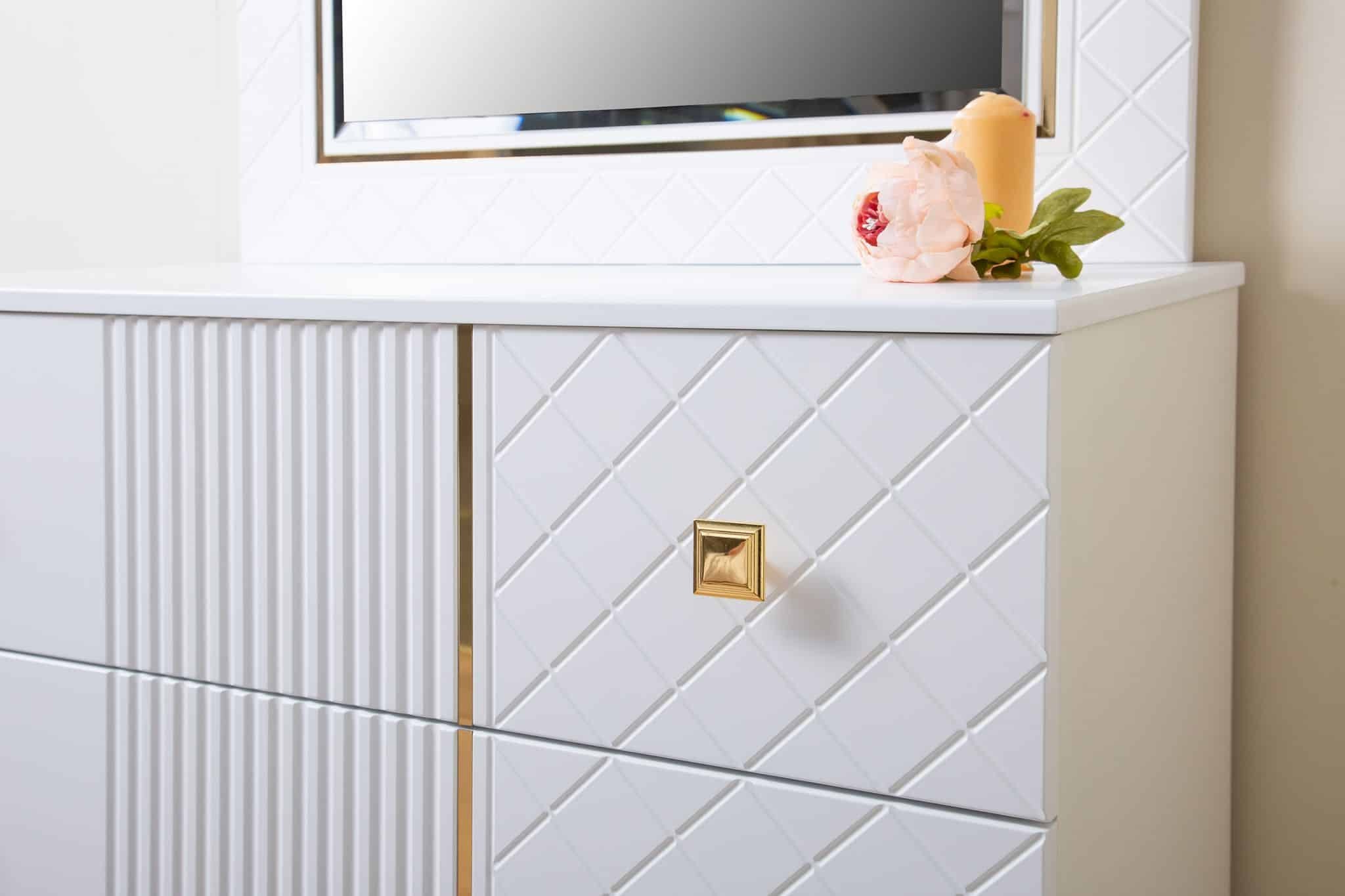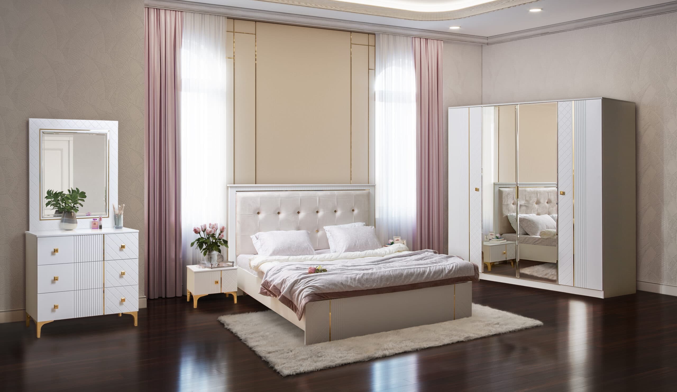 Коллекция мебели «Лаура» — это воплощение элегантности и комфорта! Ваш идеальный выбор для стильного интерьера спальни! Белый цвет корпуса и песочно-бежевые акценты создают атмосферу уюта и гармонии. Мягкий микровелюровый чехол изголовья подарит комфортное засыпание, а зеркала шкафа с изящным молдингом визуально расширят пространство. Фурнитуру Бойард с доводчиками оценят поклонники практичности. В этой коллекции ваш дом станет местом настоящего релакса и вдохновения!