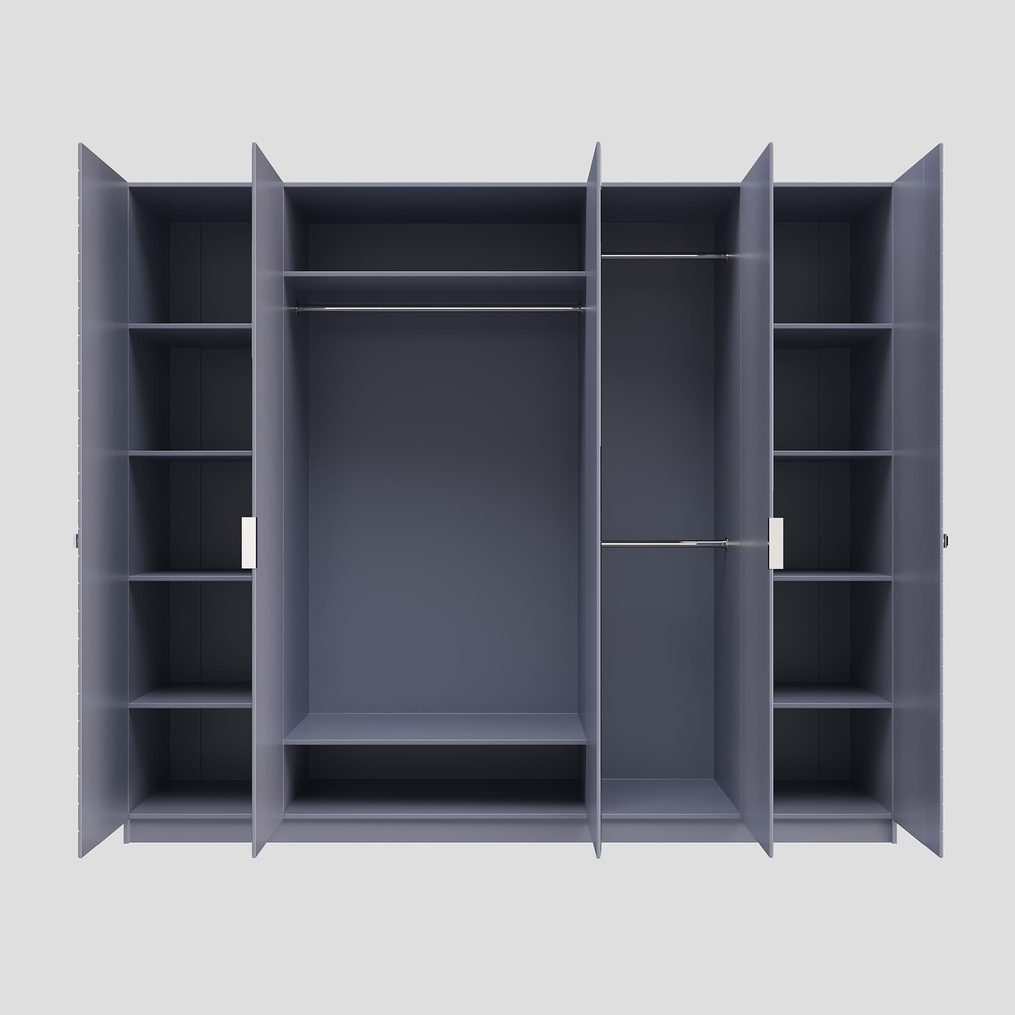 Шкаф 5-ти дверный ш: 2500 мм, г: 600 мм, в: 2100 мм Шкаф 4-х дверный ш: 2000 мм, г: 600 мм, в: 2100 мм Кровать ш: 2035 мм, г: 2051 мм, в: 1316 мм Тумба ш: 476 мм, г: 400 мм, в: 416 мм Комод ш: 960 мм, г: 450 мм, в: 903 мм Зеркало ш: 886 мм, г: 16 мм, в: 1050 мм