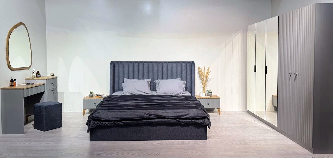 Коллекция мебели «Лиана» в оттенке Серое серебро — это элегантность и комфорт в вашем доме! Мебель из ламинированного ДСП и ЛМДФ с изысканной фрезеровкой подчеркнет вашу индивидуальность. Прямолинейные зеркала, мягкая ткань букле изголовья кровати и фурнитура цвета серебро создадут атмосферу уюта и стиля. Удобство хранения обеспечивает разнообразная корпусная мебель разных размеров, а механизмы подъема подарят дополнительное пространство для вещей. Подчеркните стиль своего дома вместе с коллекцией «Лиана».