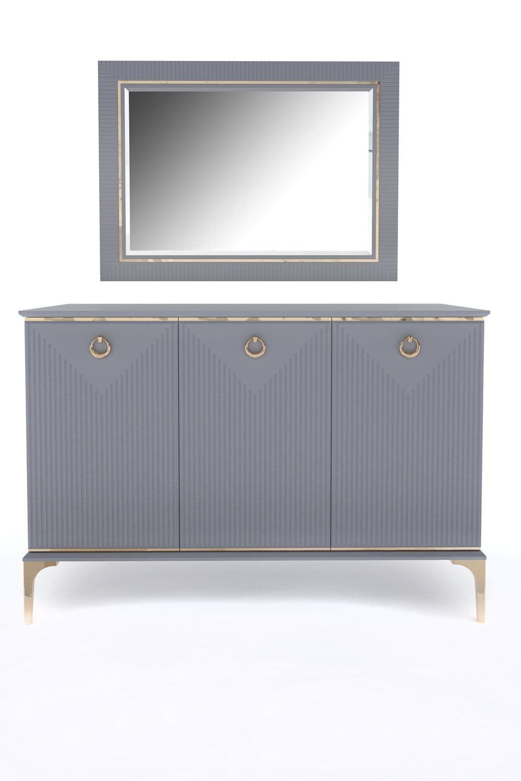 Коллекция мебели «Самира» серого цвета – это воплощение элегантности и комфорта! Внедрение ламинированного ДСП корпуса и эксклюзивного молдинга из зеркального золота Турции придаст вашему интерьеру роскошь. А фасад из крашеного ЛМДФ с матовой эмалью подчеркнет ваш изысканный вкус. Фурнитуру обеспечивает известный бренд Boyard: качественные петли с доводчиками обеспечивают плавность и тишину эксплуатации. Выберите стиль и комфорт вместе с коллекцией «Самира».
