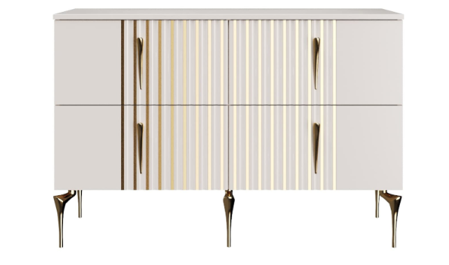 Комод «Альмира» — изысканность дизайна и функциональность в одном предмете! Элегантные зеркала молдинга, фасад из премиального материала LMDF с глянцевой эмалью подчеркнут Ваш безупречный вкус. Полка вместительна и удобна благодаря качественным механизмам фурнитуры Kamsan и Boyard. Изящная фрезеровка делает акцент на деталях и создает атмосферу роскошного интерьера. Подходит для хранения одежды, аксессуаров, белья, станет украшением спальни либо гостиной.