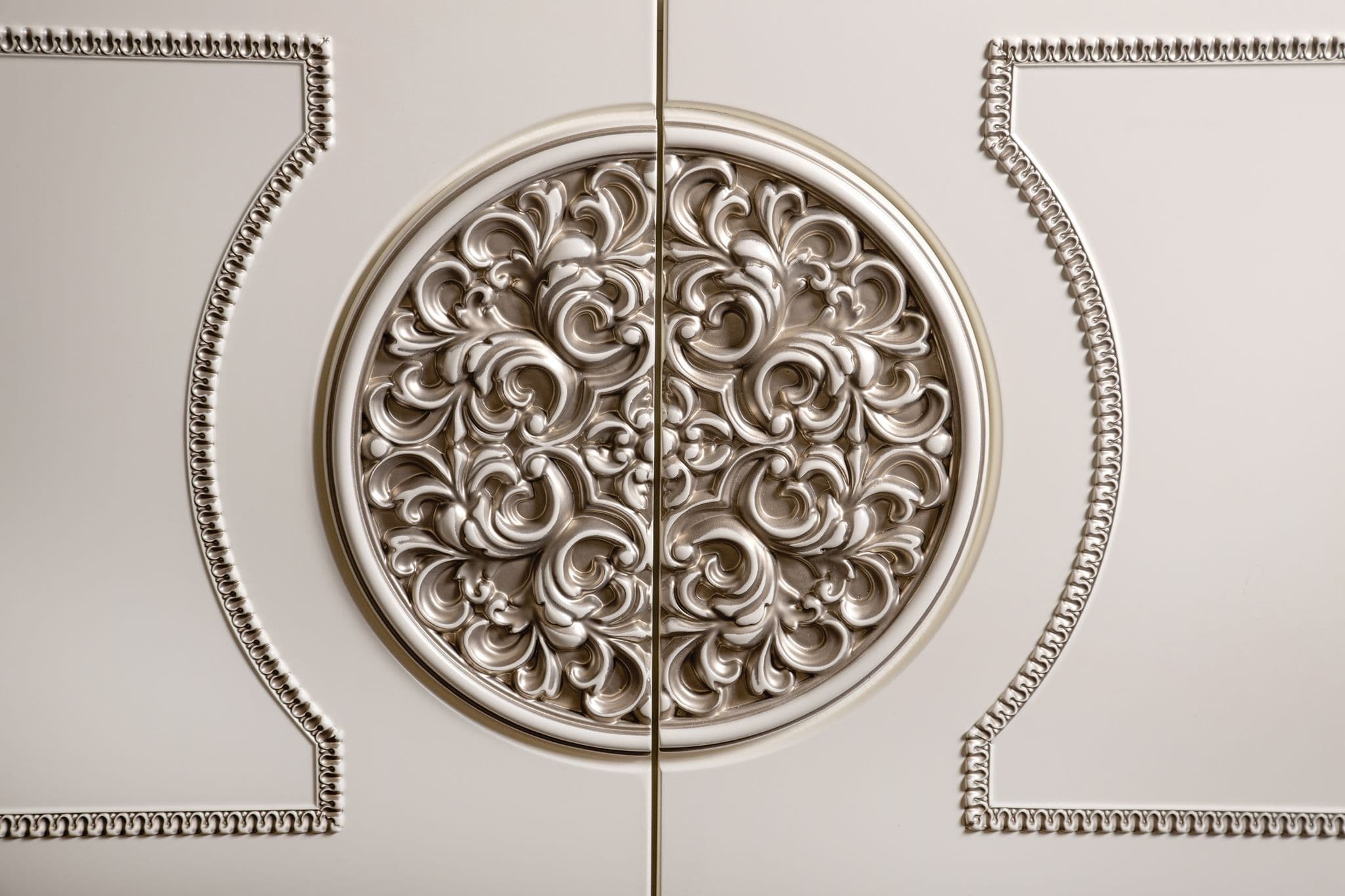 Элегантная гостиная в классическом стиле с изысканными витринами, резными фасадами и мягкой цветовой палитрой. Функциональные шкафы и тумбы обеспечивают удобство хранения, а натуральные материалы и гармоничные детали подчеркивают благородство интерьера. Декоративные элементы придают обстановке утонченность и уют.