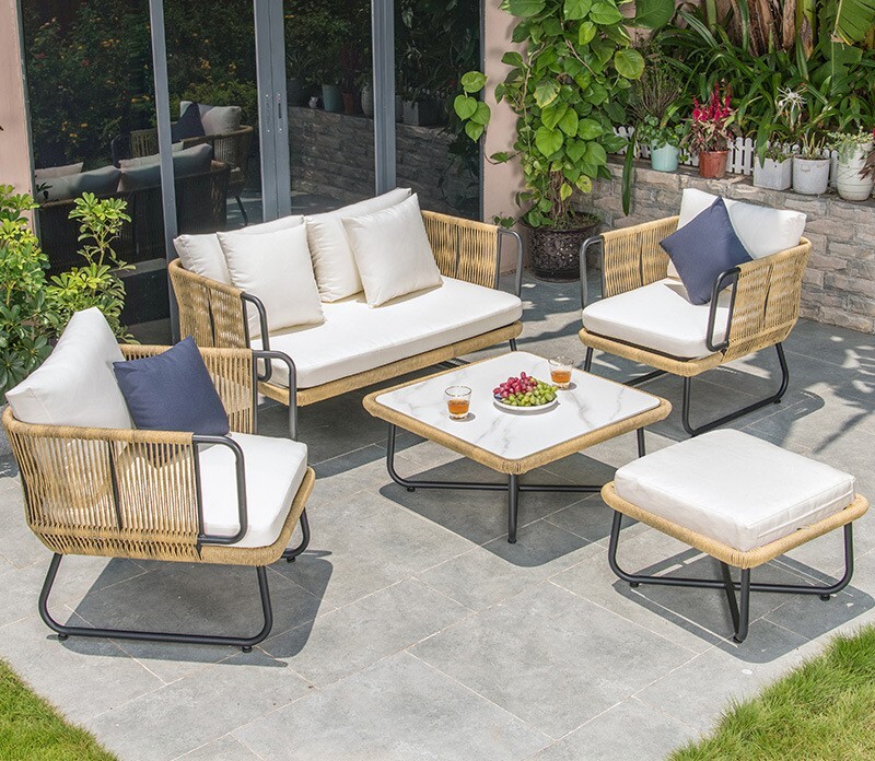 Предлагается комплект уличной мебели состоящий из одного дивана, двух кресел, одного столика и одного пуфика. Этот комплект – идеальный выбор для тех, кто мечтает о комфортном отдыхе на свежем воздухе! Стильный дизайн, качественные материалы и продуманная конструкция подарят вам незабываемые моменты уюта и комфорта. В этом наборе каждый элемент гармонично сочетается друг с другом, создавая атмосферу настоящего загородного блаженства. Впишите название вашего бренда здесь и сделайте свой сад или террасу местом отдыха вашей мечты!