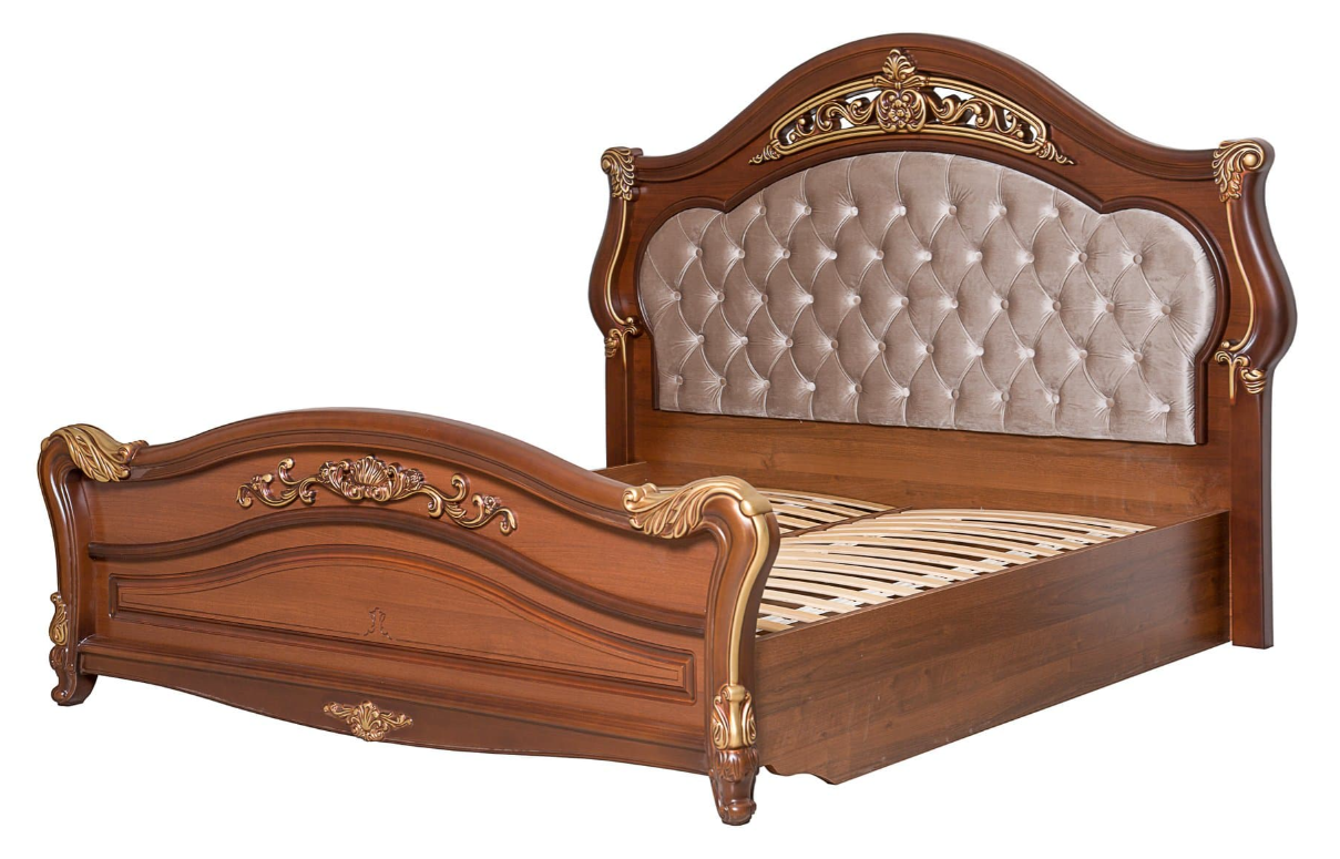 Кровать «Касандра» – это воплощение роскоши и комфорта. Ее изысканный дизайн подчеркивается сочетанием натуральных материалов и элегантных декоративных элементов. Мягкий микровелюровый чехол изголовья создает уютную атмосферу, а ортопедическое основание обеспечивает здоровый сон и поддержку спины. Каждый элемент мебели тщательно продуман: от качественных ламелей до фасадного покрытия итальянского производства. Спальня "Касандра" станет истинным центром уюта вашего дома! Единственное место в доме, которое должно полностью соответствовать всем внутренним пожеланиям, несомненно, является спальня. «Касандра» считается поистине королевской благодаря соединению пикантности и удобства. Плавные линии, темное дерево и позолоченные элементы декора придают образу необыкновенную утонченность.
