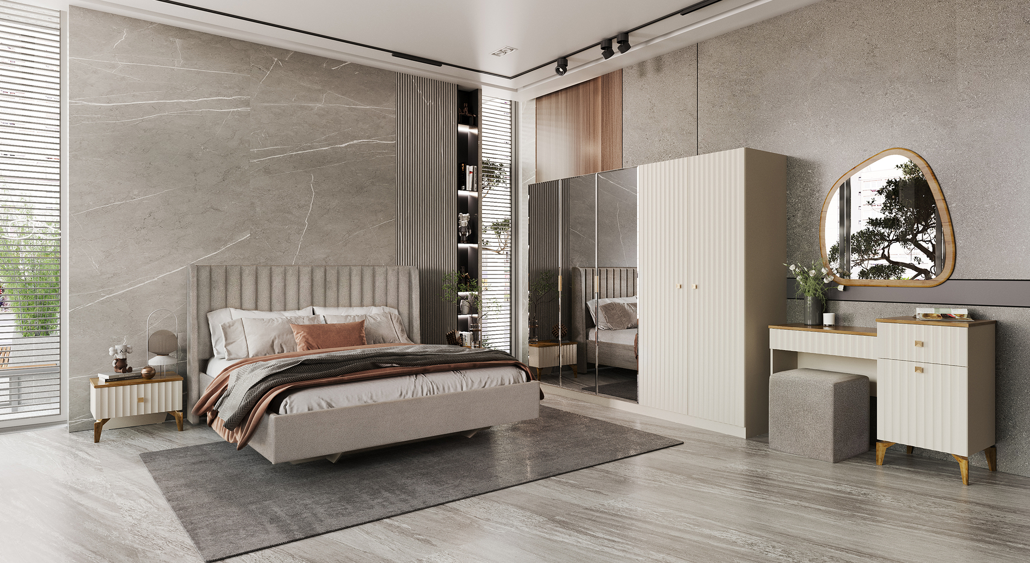 Шкаф 5-ти дверный ш: 2500 мм, г: 600 мм, в: 2100 мм Шкаф 4-х дверный ш: 2000 мм, г: 600 мм, в: 2100 мм Шкаф 3-х дверный ш: 1500 мм, г: 600 мм, в: 2100 мм Кровать 1.8 ш: 2014 мм, г: 2070 мм, в: 1236 мм Кровать 1.8 подъем. механизм ш: 2014 мм, г: 2070 мм, в: 1236 мм Кровать 1.6 ш: 1817 мм, г: 2070 мм, в: 1236 мм Кровать 1.6 подъем. механизм ш: 1817 мм, г: 2070 мм, в:1236 мм Тумба ш: 566 мм, г: 400 мм, в: 403 мм Туалетный стол ш: 1253 мм, г: 450 мм, в: 911 мм Комод ш: 968 мм, г: 450 мм, в: 911 мм Зеркало ш: 875 мм, г: 20 мм, в: 940 мм Пуфик ш: 350 мм, г: 350 мм, в: 430 мм