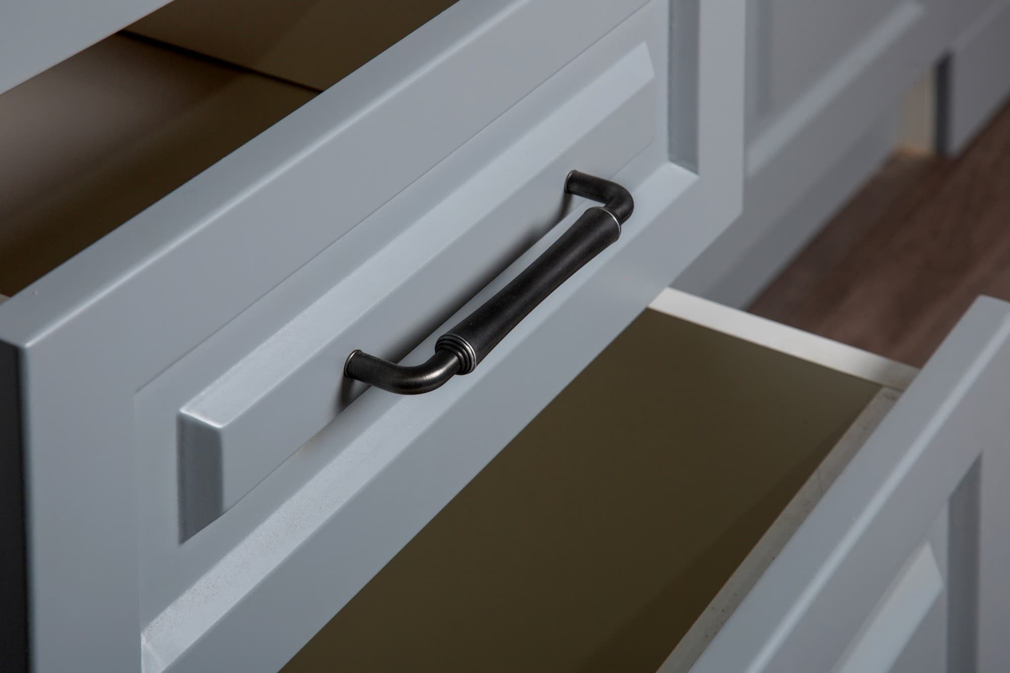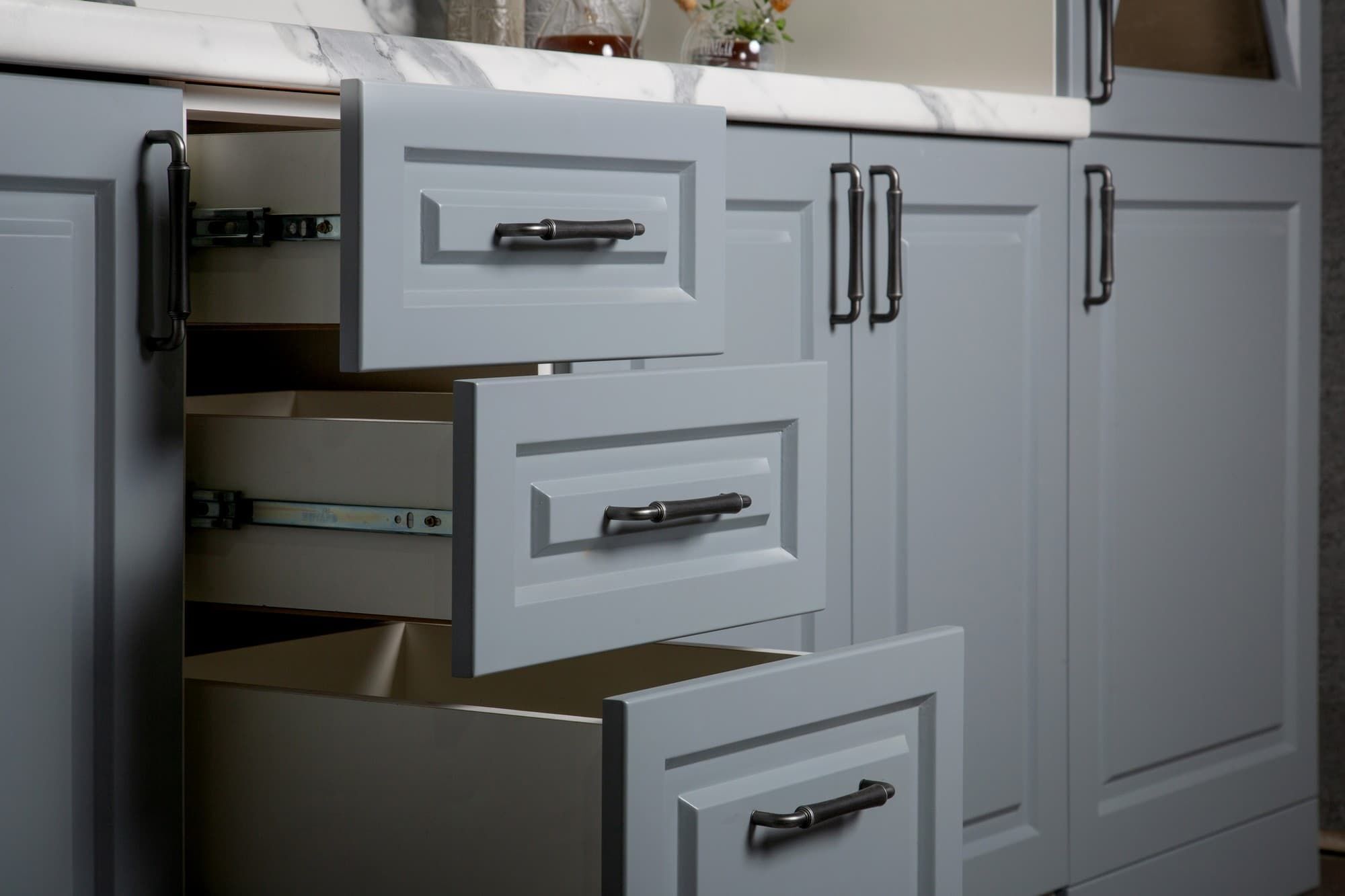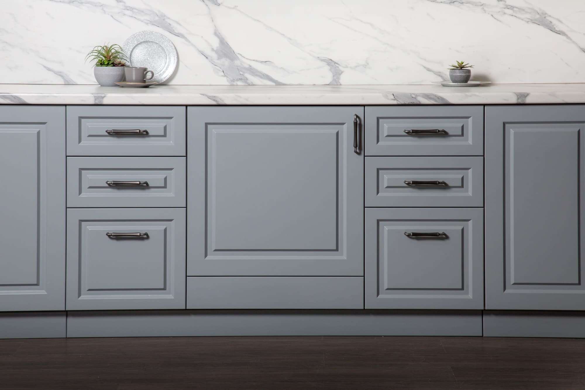 Кухня «Виктория» в элегантном цвете «Седая ночь» — это гармония серого и белого, дарящая пространству аристократичную глубину и свет. Идеальна для современного, скандинавского интерьера или лаконичного минимализма, где ценится чистота линий и спокойная палитра.