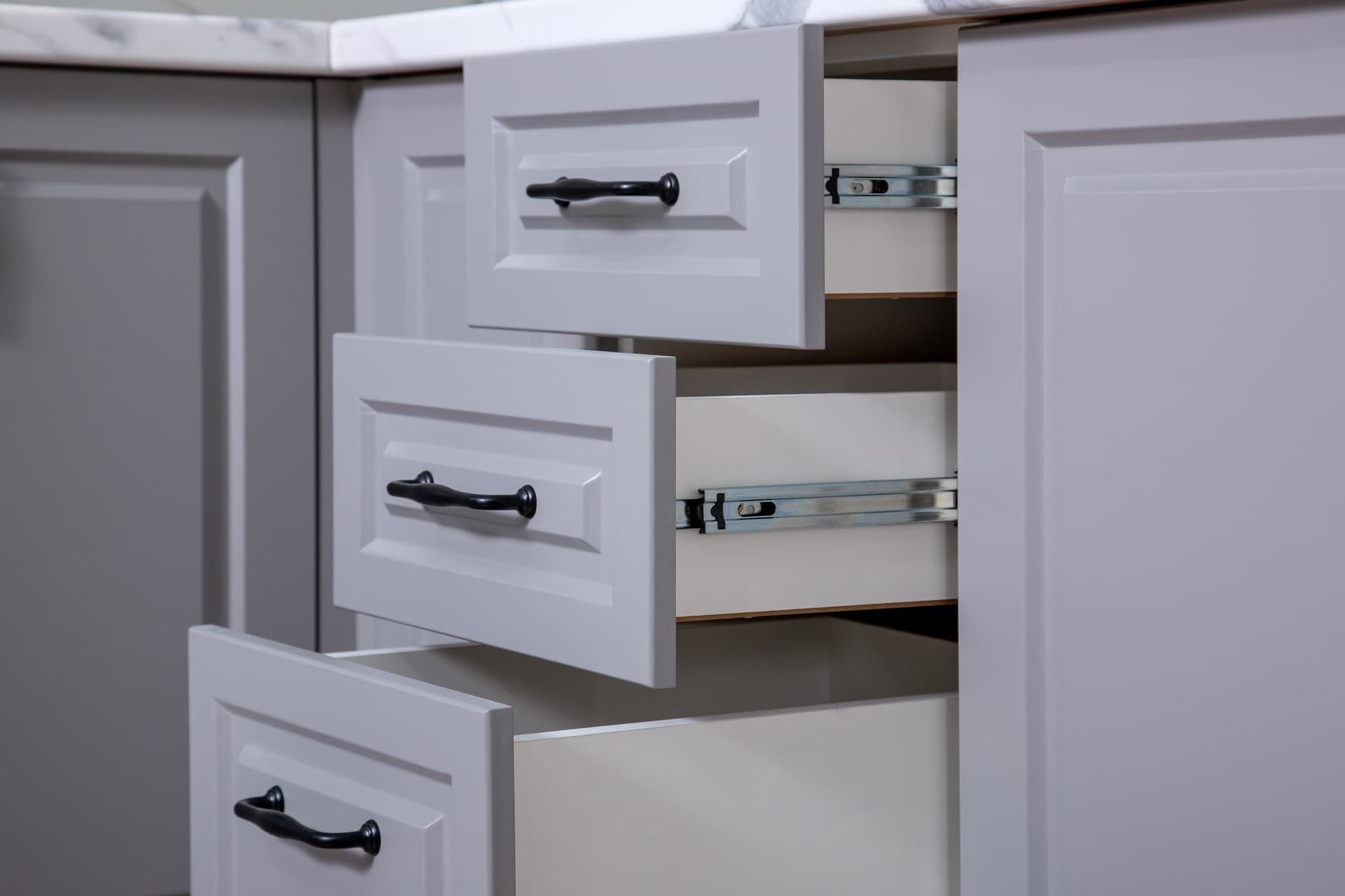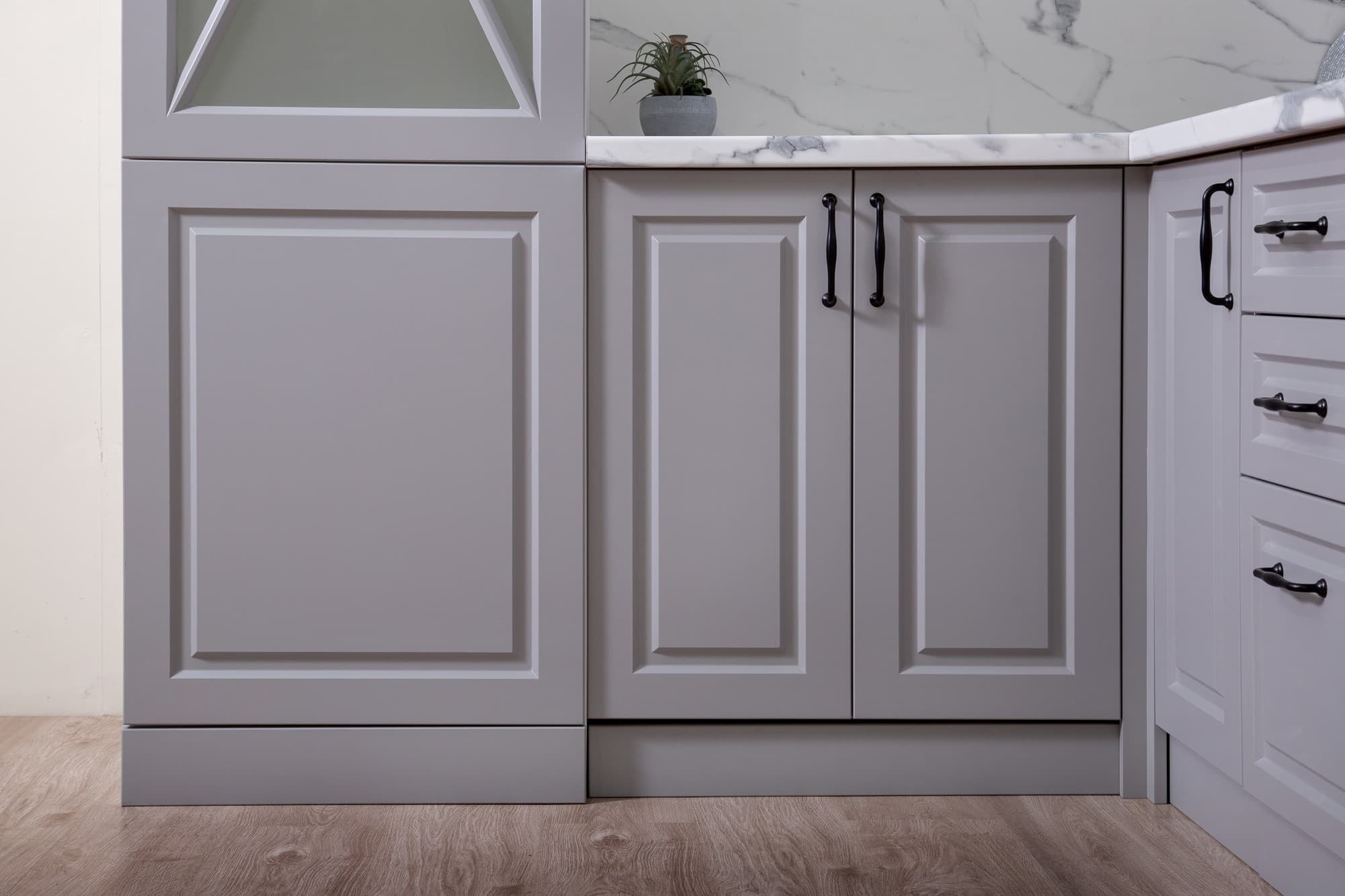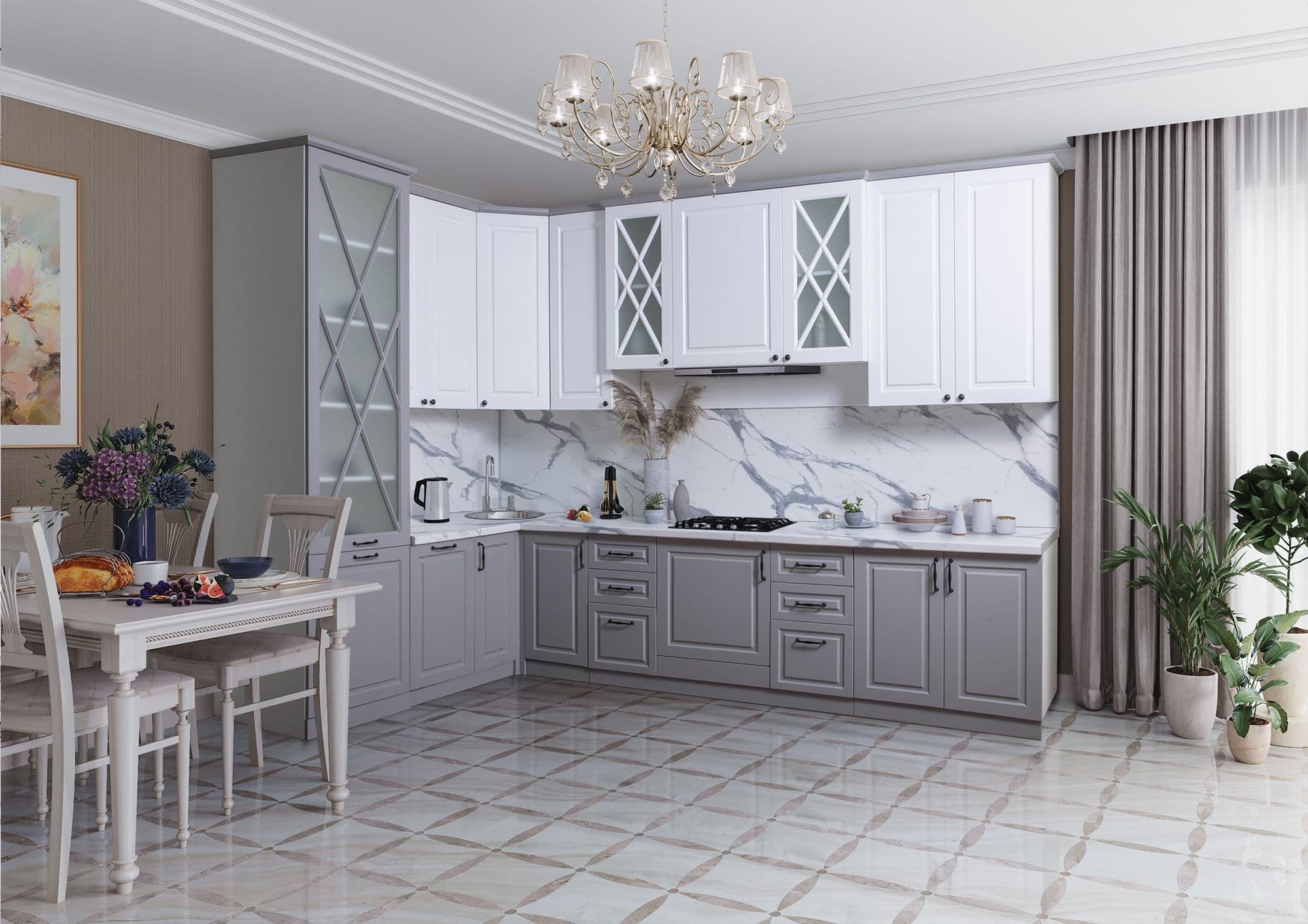 Угловая кухня «Виктория» в элегантном дуэте «Седая ночь» — идеальное сочетание белого и серого для создания утонченной атмосферы. Ее лаконичные линии и матовая эмаль фасадов (ЛМДФ с фрезеровкой) органично впишутся в современный, скандинавский или минимализм стиль, привнося ощущение простора и порядка.
