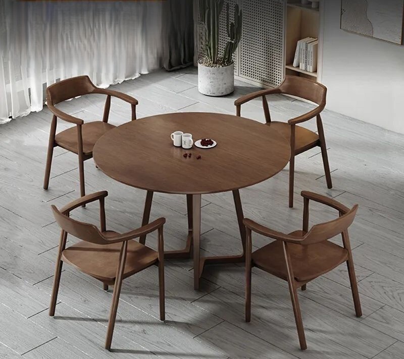 Обеденный набор из массива дерева – это гармония стиля, комфорта и надежности! Стильный дизайн подчеркнет изысканность вашего интерьера, а прочность материалов обеспечит долговечность использования. Идеально подходит для семейных ужинов и праздничных застолий. С этим набором каждый прием пищи станет настоящим удовольствием! Покупайте сейчас и создайте атмосферу уюта и тепла в вашем доме! В набор входит стол диаметром 1м и четыре стула