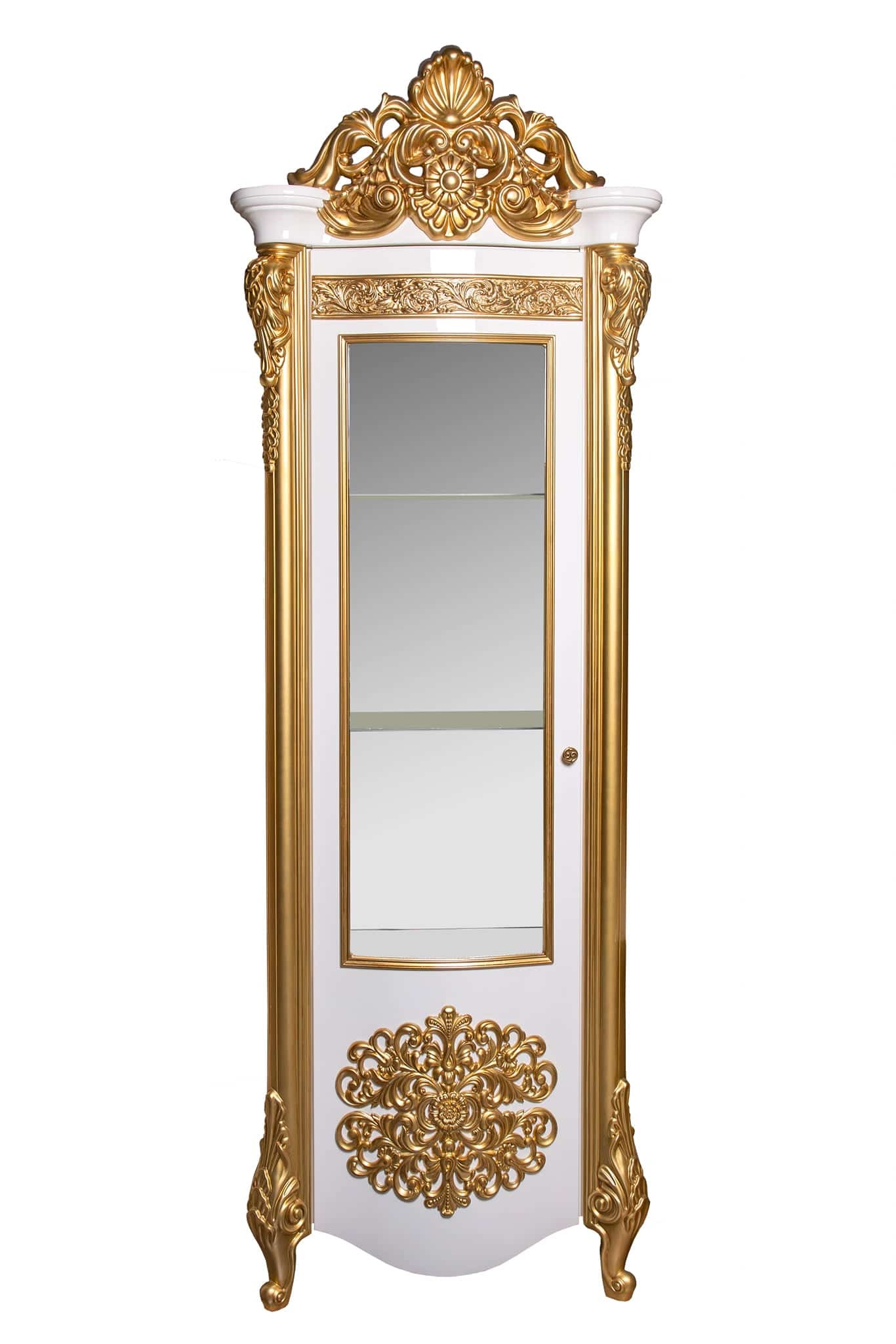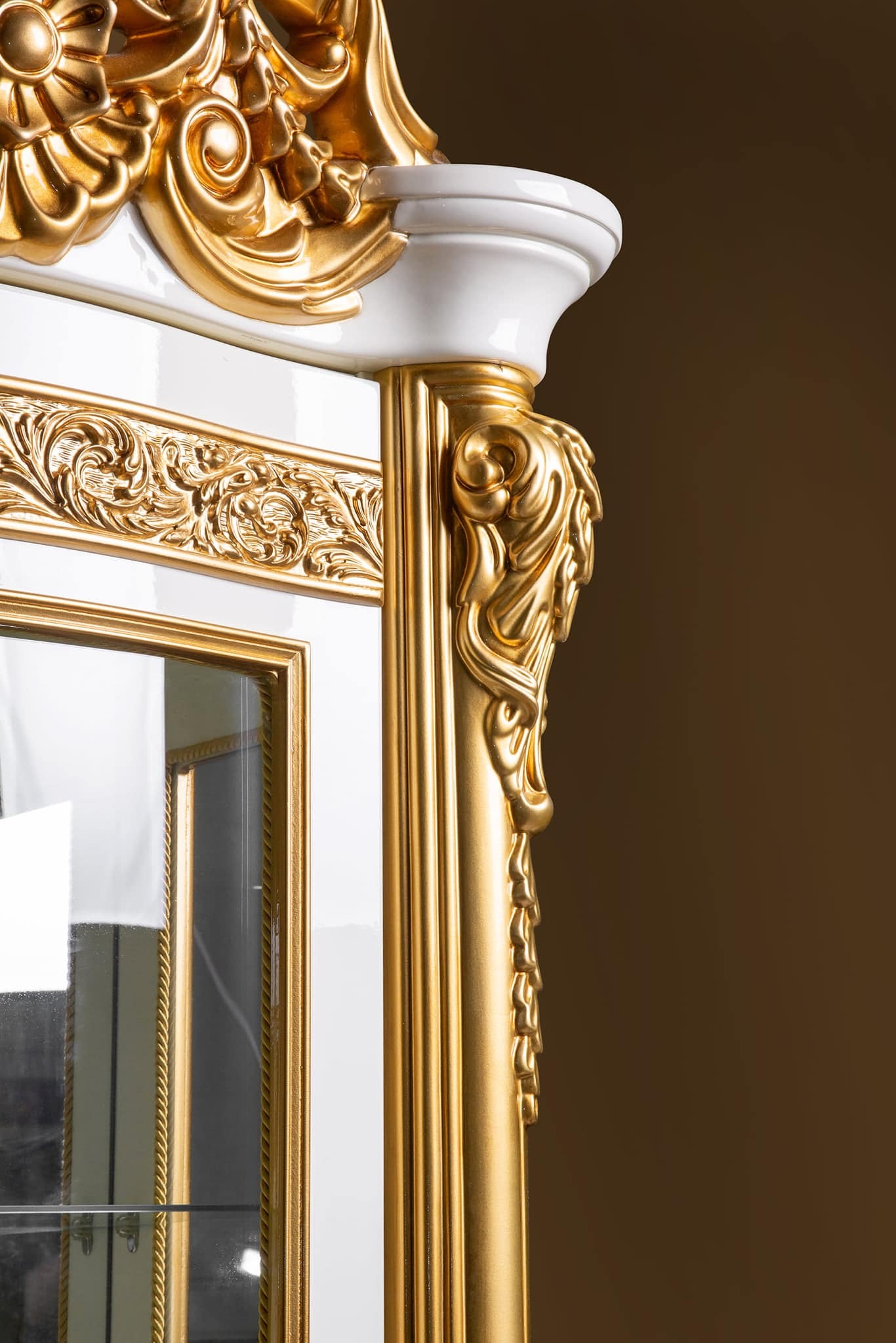 Фасад – прямой, крашеный ЛМДФ с фрезеровкой и элементами декора, лак глянцевый, карниз и стоевые из пенополиуретана