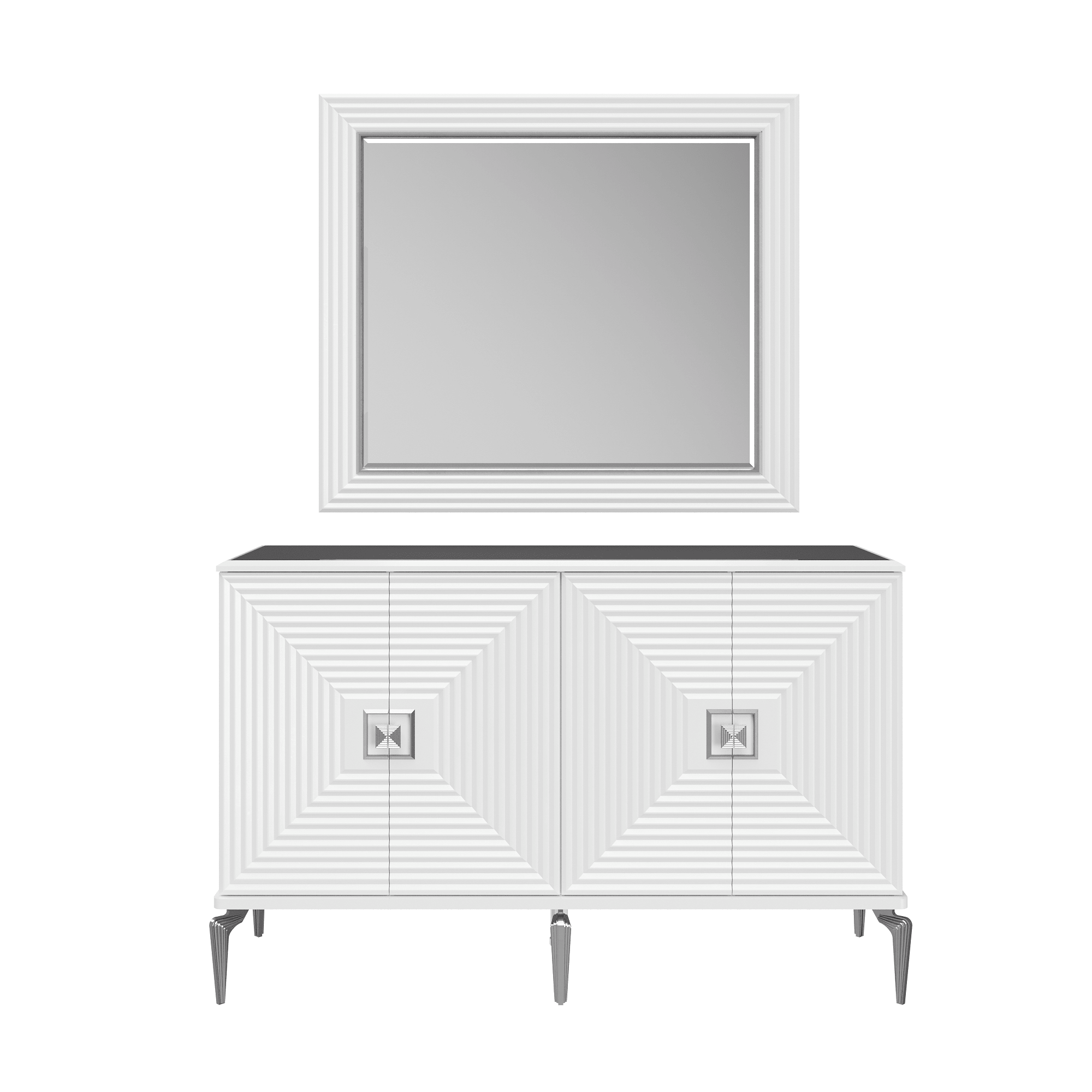 Гостиная “Алия” Серебро – Элегантность в холодных оттенках. Фасады мебели украшены рельефными узорами, создавая игру света и тени, а изящные металлические ножки добавляют легкости конструкции. Мягкий блеск серебра подчеркивает премиальность каждой детали. Идеальный выбор для интерьера, где сочетаются стиль, комфорт и утонченность.