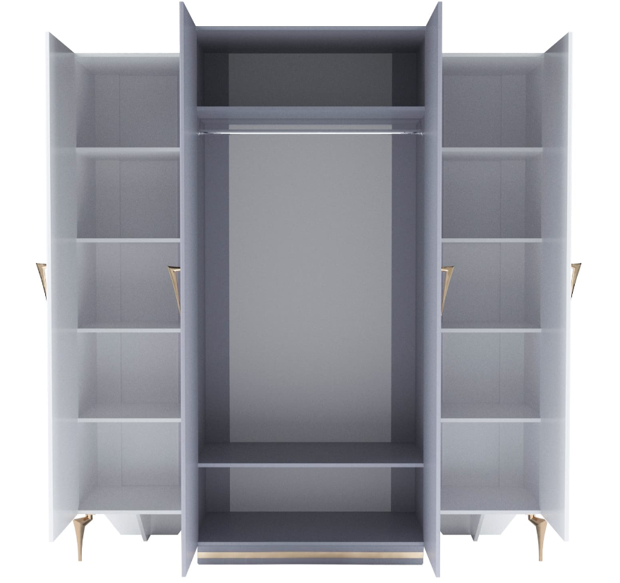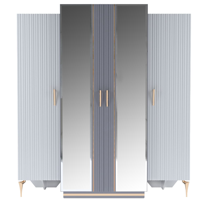 Представляем элегантный шкаф «Самира» — идеальное сочетание стиля и функциональности! Прямолинейные зеркала с золотым молдингом придадут изысканность вашему интерьеру. Корпус из ламинированного ДСП и фасад из крашеного ЛМДФ обеспечат долговечность и эстетичность. Туринская фурнитура Kamsan и Boyard гарантирует надежность эксплуатации. Гармоничный серо-белый оттенок подходит к любому дизайну комнаты. Вместительный и стильный – ваш идеальный выбор!