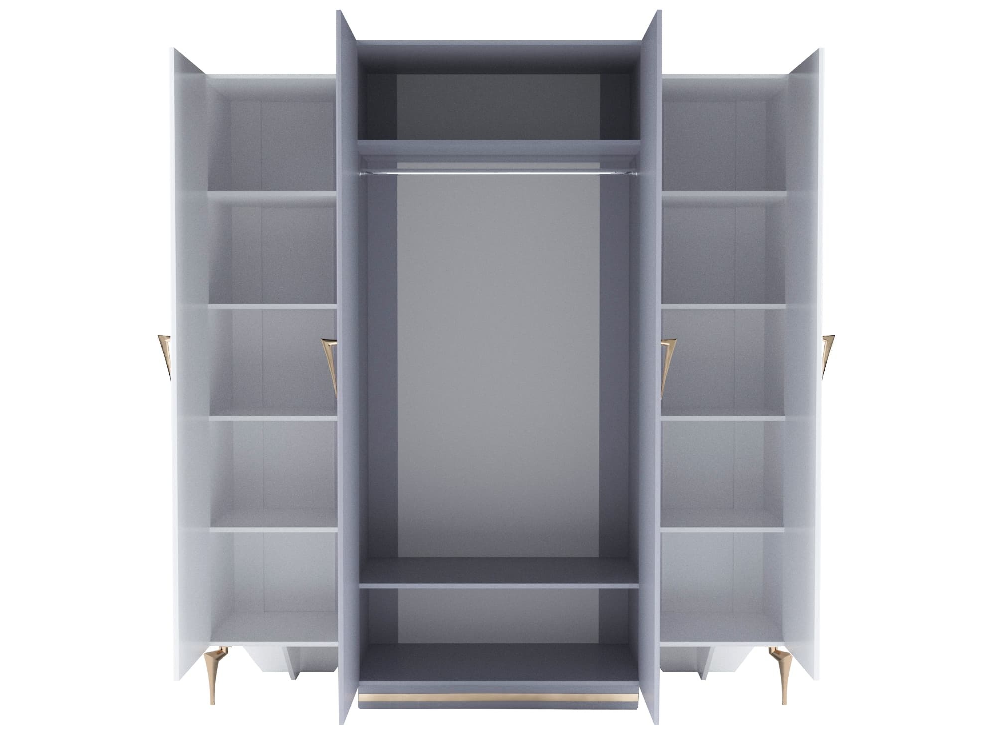 Шкаф 4-х дверный ш: 1998 мм, г: 600 мм, в: 2220 мм Шкаф 6-ти дверный с опорой ш: 2800 мм, г: 600 мм, в: 2220 мм Шкаф 6-ти дверный без опор ш: 2698 мм, г: 600 мм, в: 2220 мм Кровать ш: 2100 мм, г: 2037 мм, в: 1300 мм Тумба ш: 500 мм, г: 420 мм, в: 460 мм Комод ш: 1500 мм, г: 500 мм, в: 880 мм Зеркало ш: 808 мм, г: 20 мм, в: 1108 мм