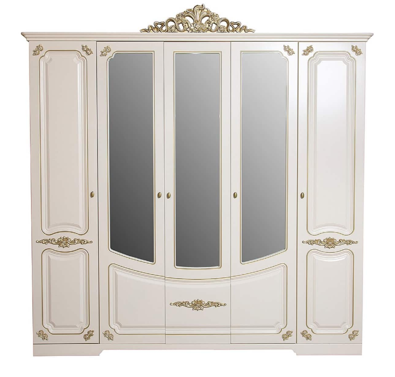 Шкаф 5-дверный "Магдалина" — сердце спальни, сочетающее элегантную сдержанность и утонченную роскошь. Изящная патина золота Rener (Италия), корпус из качественного ламинированного ДСП, фасад из крашеного ЛМДФ с изысканной фрезеровкой и декором создают атмосферу уюта и гармонии. Карниз из пенополиуретана и матовый лак завершают образ этой стильной мебели, идеально вписывающейся в современный дизайн вашей спальни. В такую спальню как “Магдалина” невозможно не влюбиться! Баланс простоты и роскоши в результате дает только уют и нежность. Доступный вариант для создания современного интерьера.