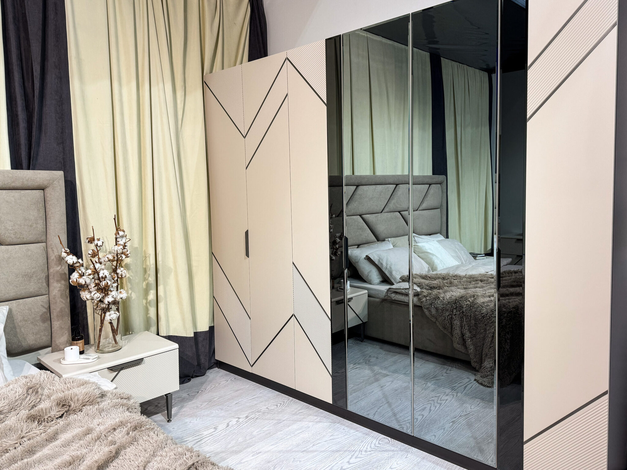 прямолинейный фацет из черного и графитового зеркала, рамка с гравировкой