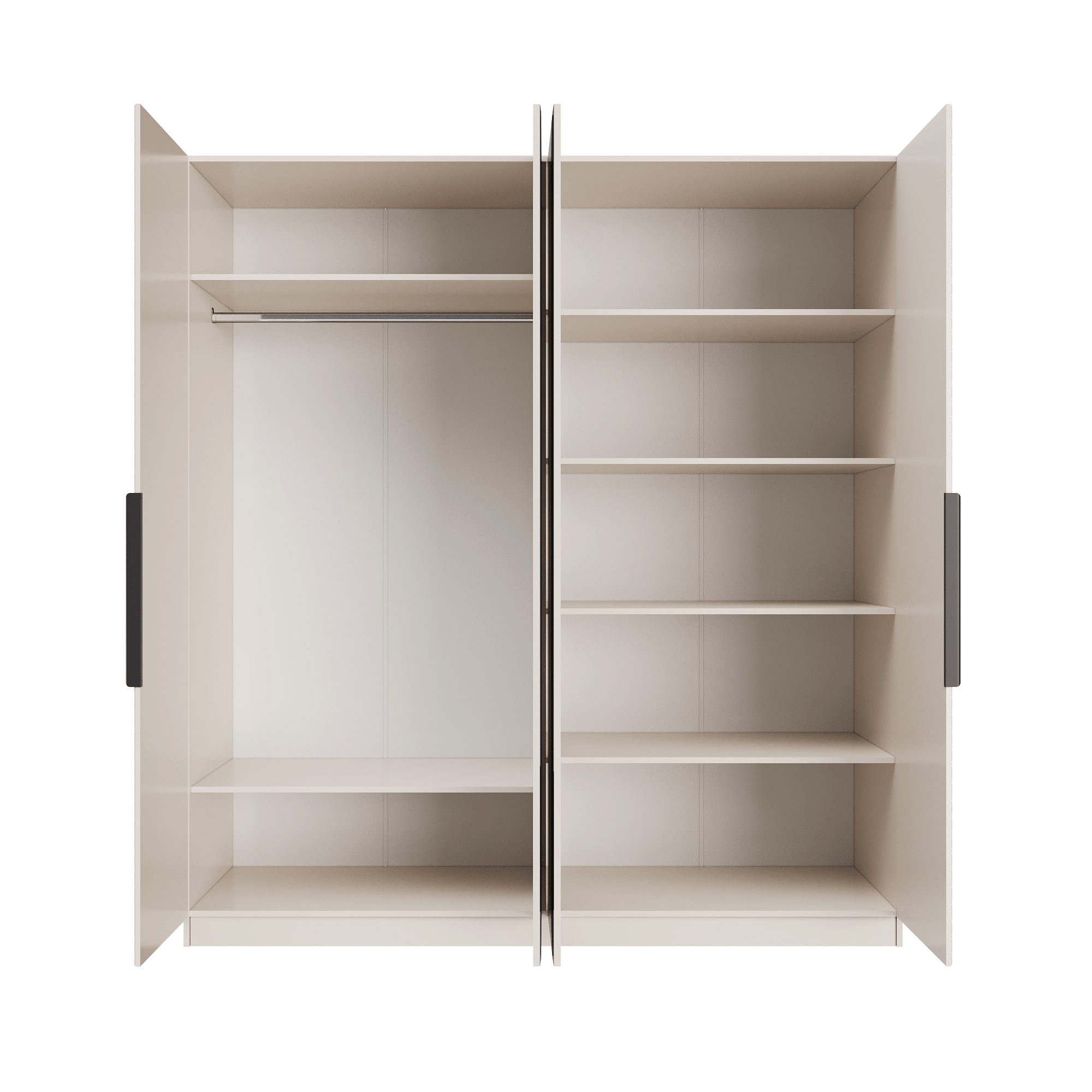 Шкаф 4-х дверный ш: 2000 мм, г: 600 мм, в: 2200 мм Кровать 1.8 ш: 1982 мм, г: 2037 мм, в: 1300 мм Тумба ш: 560 мм, г: 400 мм, в: 431 мм Комод ш: 960 мм, г: 450 мм, в: 922 мм Зеркало ш: 960 мм, г: 20 мм, в: 900 мм