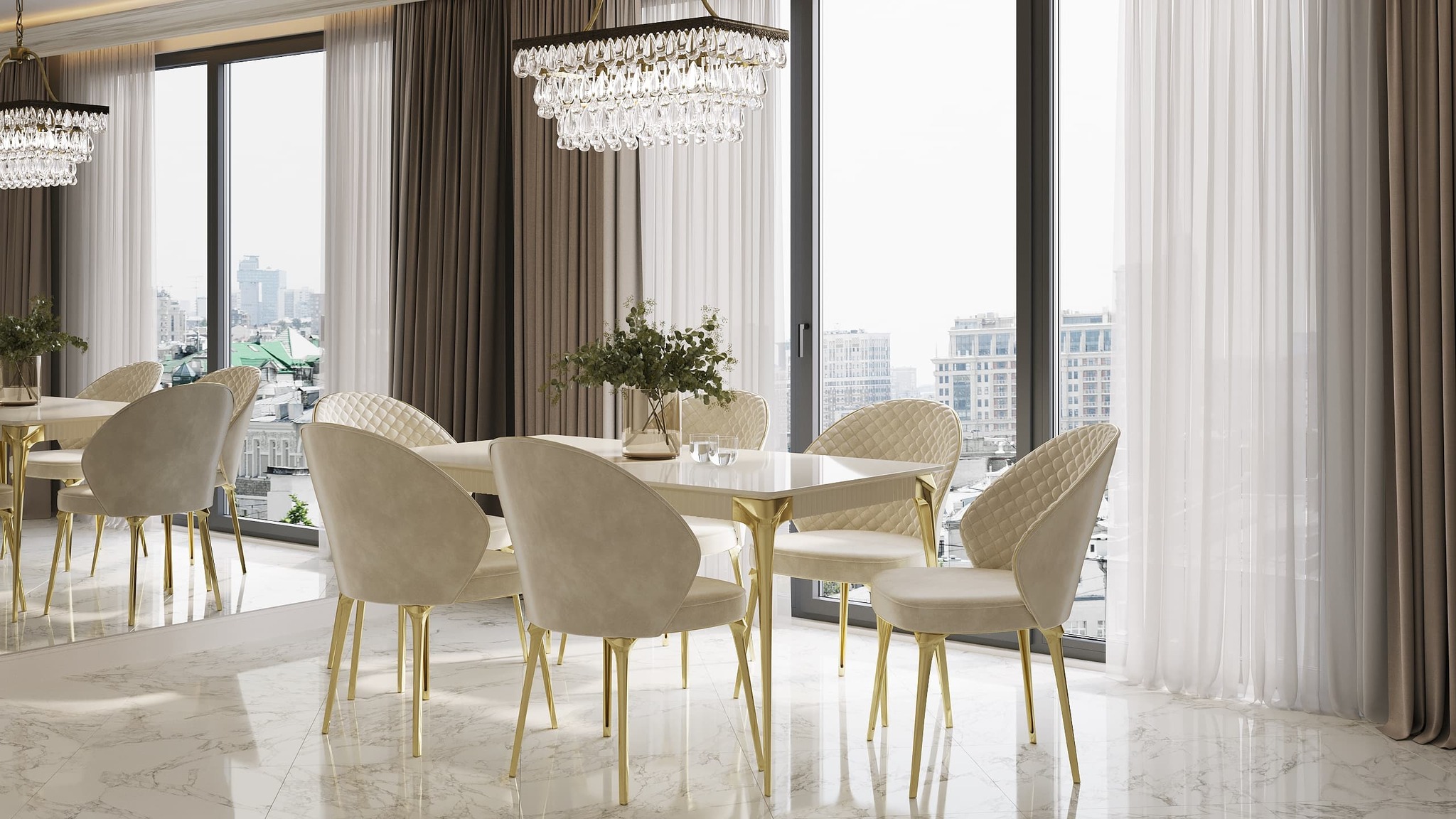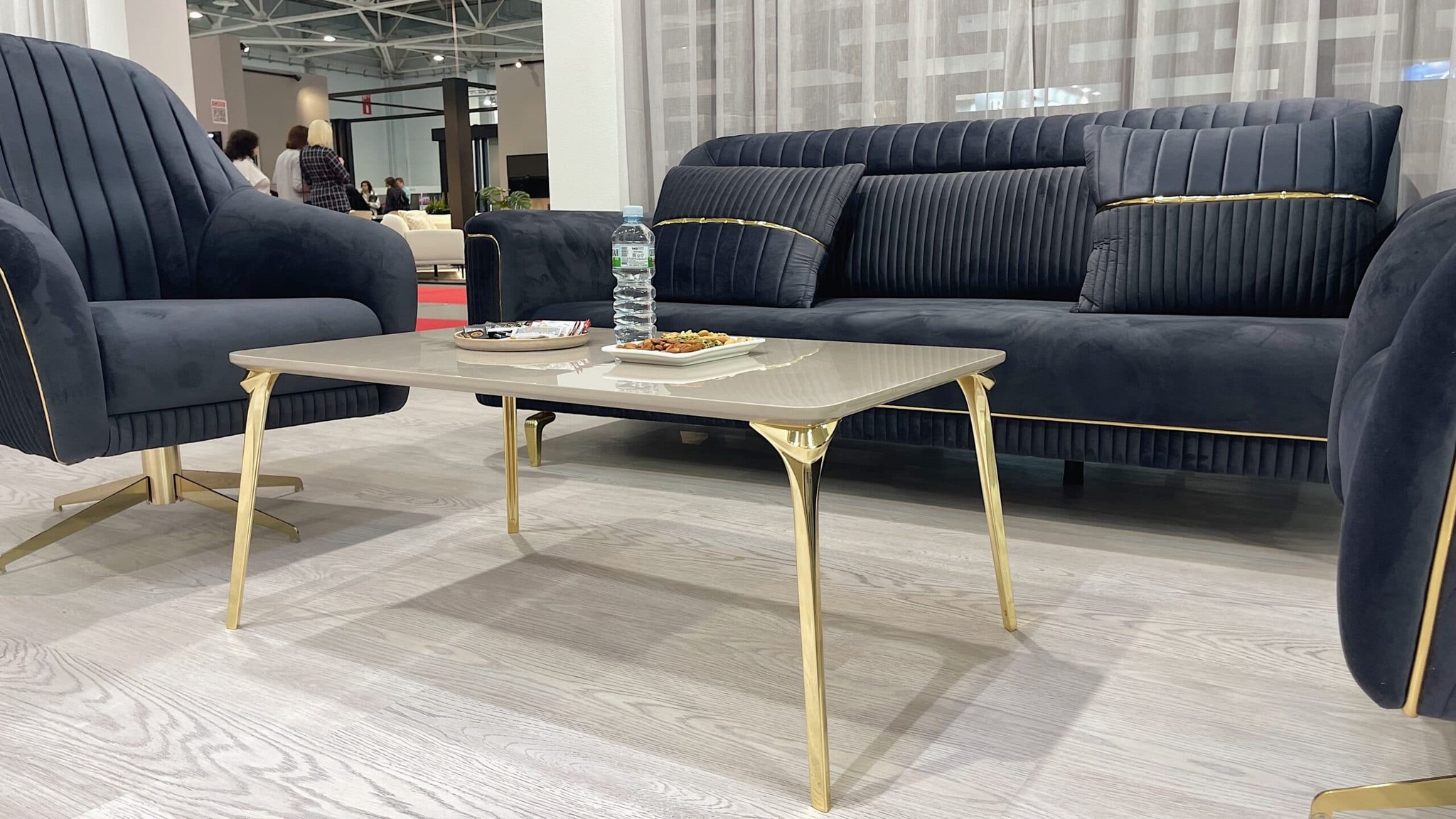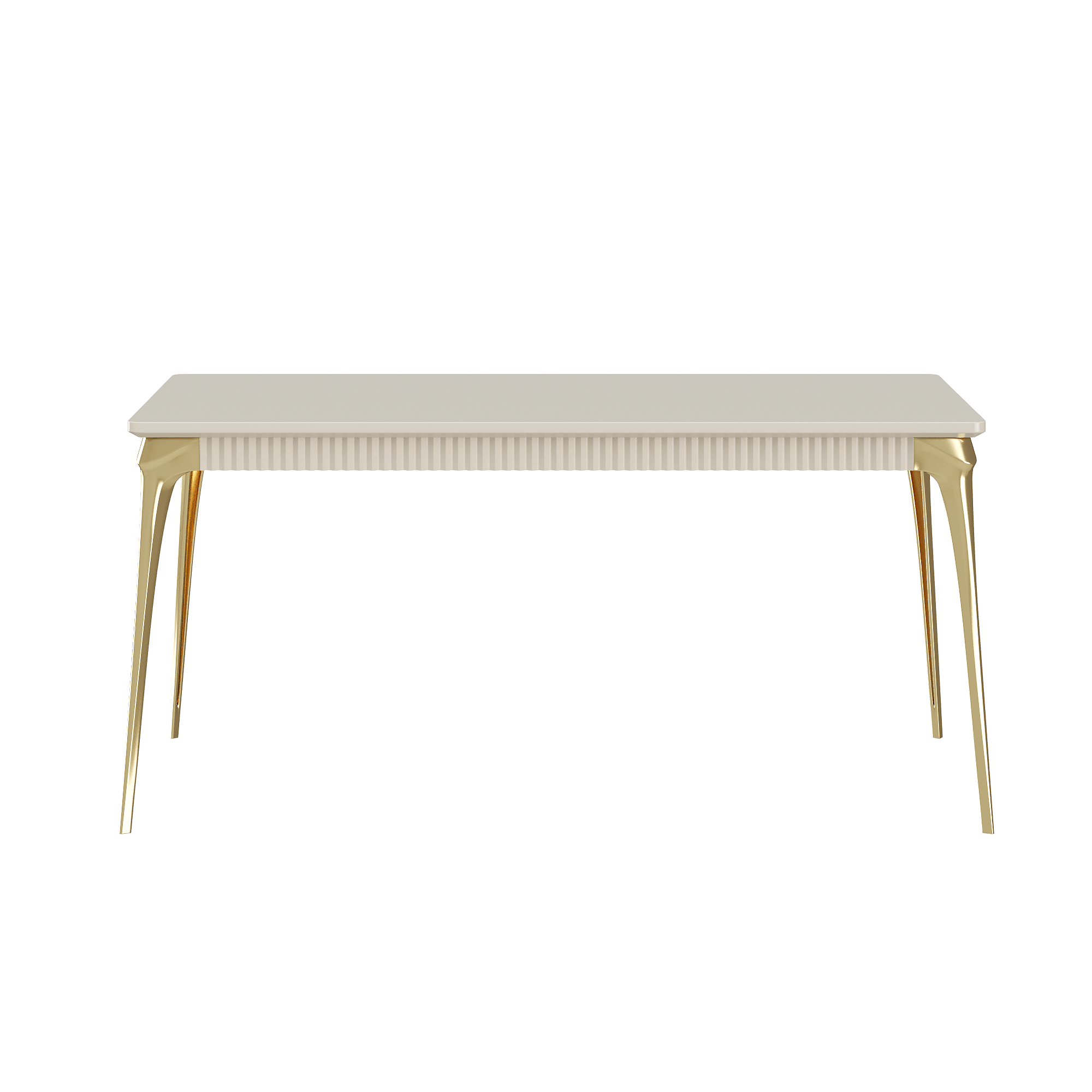 Размер стола -ш: 850 мм, д: 1600 мм, в: 765 мм Фасад – прямой, крашенный ЛМДФ Ножки – металл глянец золото Emaks (Турция) Цвет – Сатин глянец, кашемир, белый