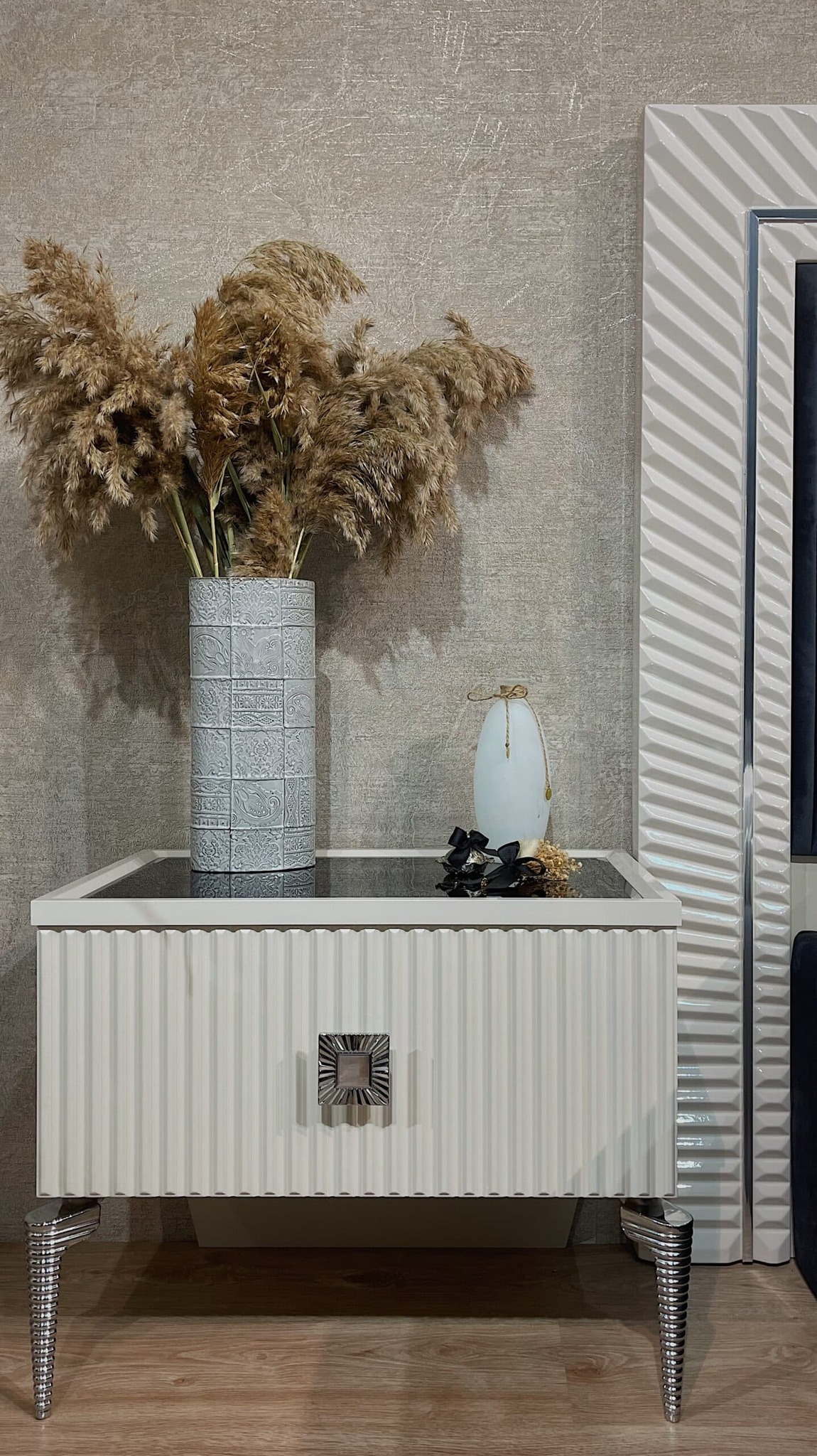 прямой, крашеный ЛМДФ (эмаль глянцевая) с фрезеровкой