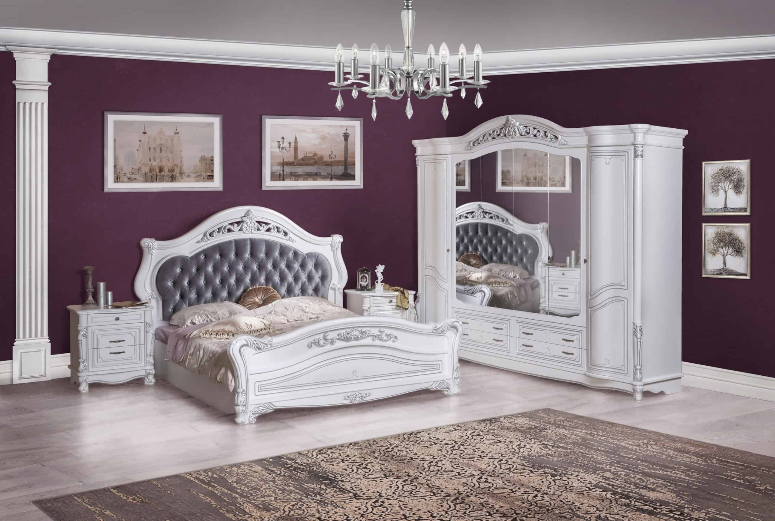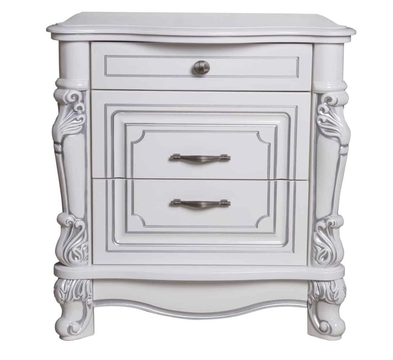 Тумба «Касандра» белая серебро — изысканный элемент спальни, воплощающий утонченность классики в современности. Выполненная из качественного ламинированного ДСП с патиной серебра итальянского производства, она сочетает элегантную белую палитру с мягкими оттенками металла. Элегантная фрезеровка фасада и декоративные элементы из полиуретана придают мебели завершенность образа. Лакированная поверхность подчеркивает благородство форм, а фурнитура с плавным закрыванием обеспечивает комфортное использование. Этот предмет интерьера станет изящным акцентом вашего пространства!