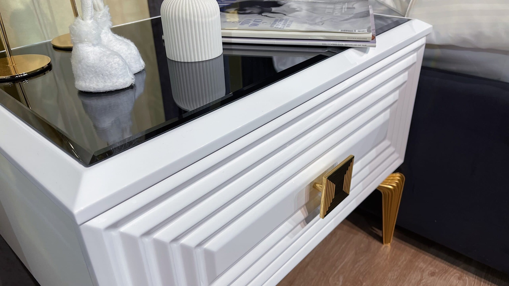 прямой, крашеный ЛМДФ (эмаль глянцевая) с фрезеровкой