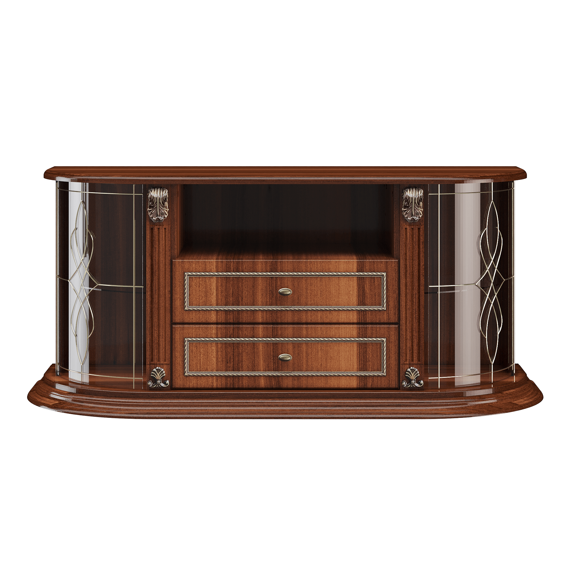 В комплект гостиной «Динара» входят вместительный сервант, две угловые секции, а также ТВ тумба, комод и зеркало.