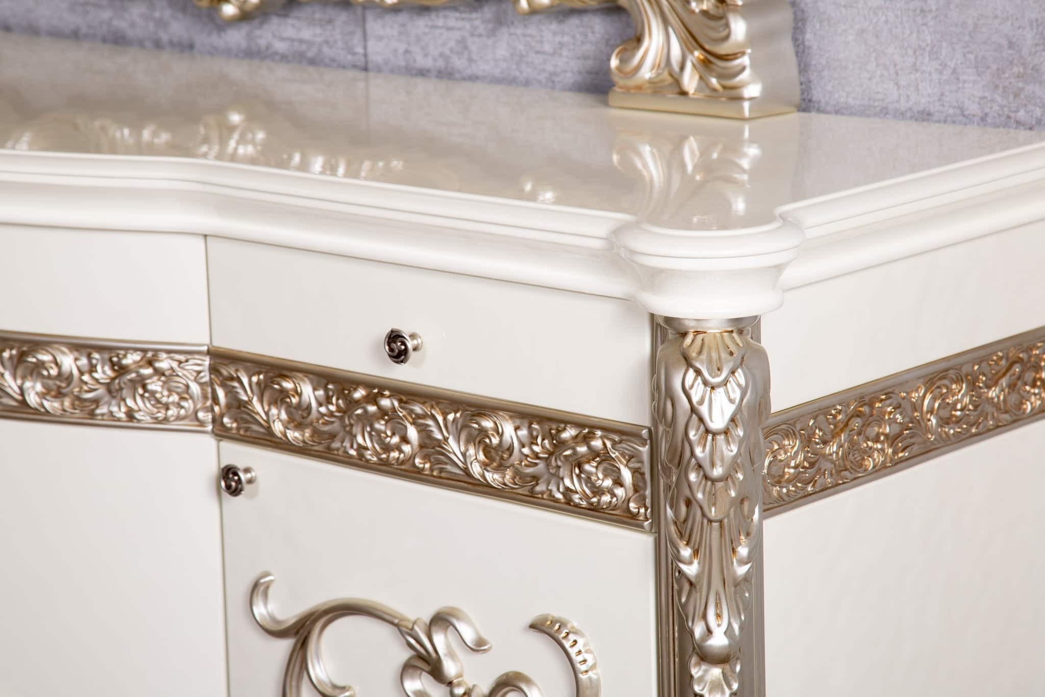 Гостиная Маркиза гармонично дополнит интерьер вашего жилища. Фасады деталей данной мебели для гостиной отделаны декоративными резными узорами, что придаст гостиной изящества.